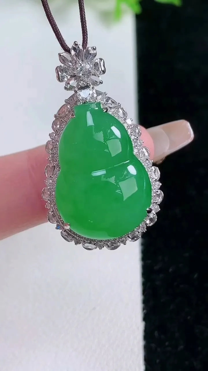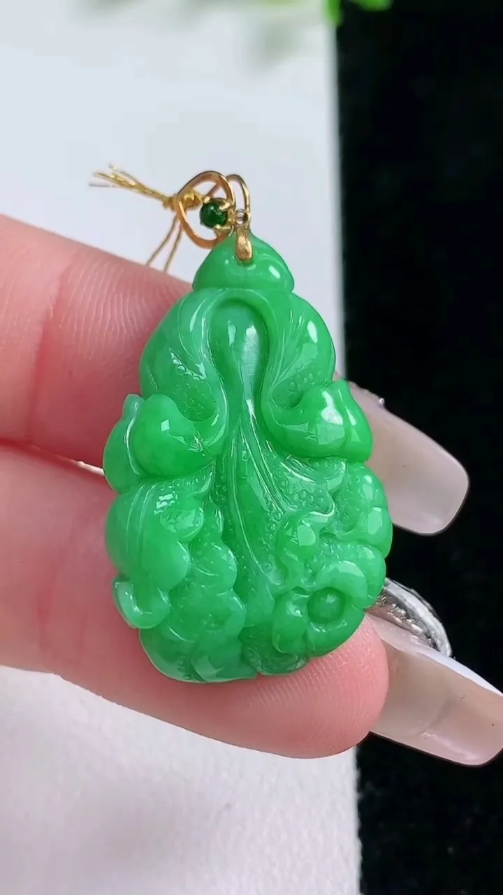 秒杀【超低价放漏】18K金镶嵌水润飘绿多子多福葡萄翡翠吊坠,寓意好,款式新颖,佩戴效果时尚出众, 尽显气质,美感十足。#1.21