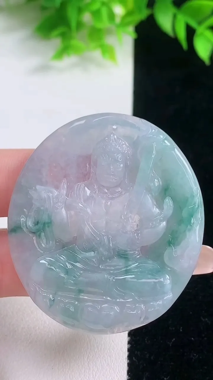 天然A货翡翠冰种飘花不动明王吊坠,尺寸49.7-44.4-5,重量:23.08g 1月18日
