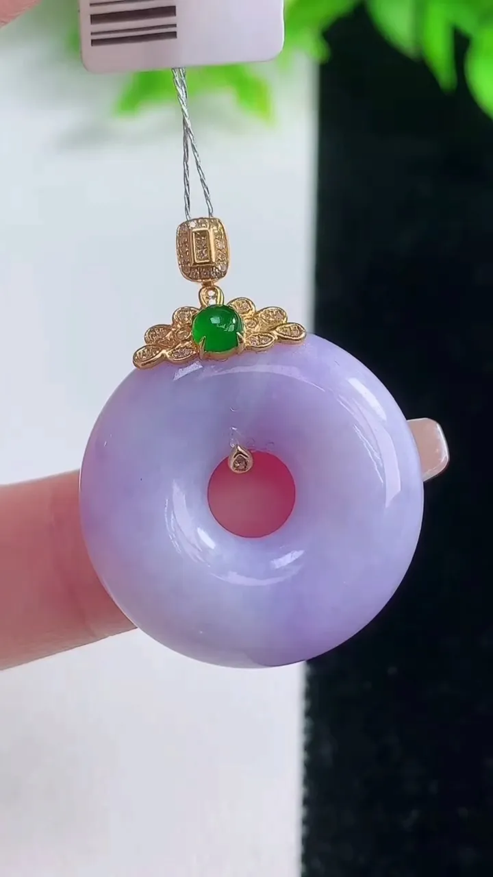 天然A货翡翠18K金紫罗兰平安环吊坠,尺寸24.7-8,重量:10.78g 1月18日