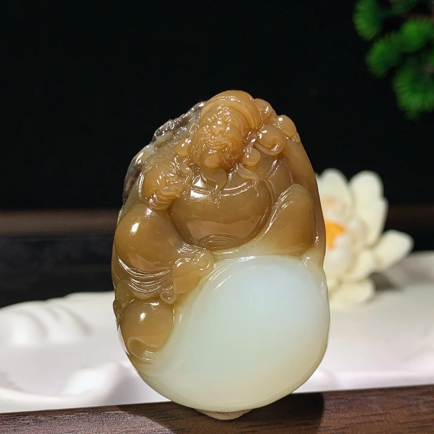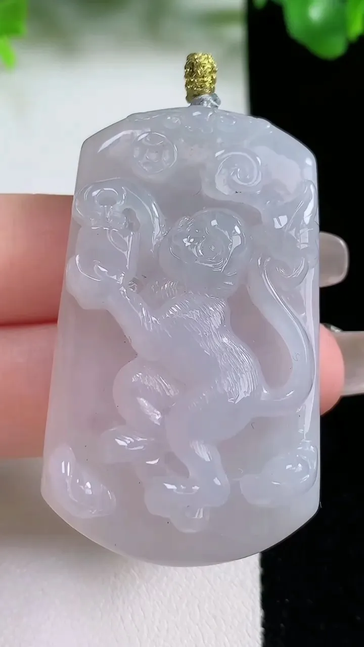 天然A货翡翠生肖猴吊坠,尺寸50.5-28.5-9,重量:25.63g 1月20日