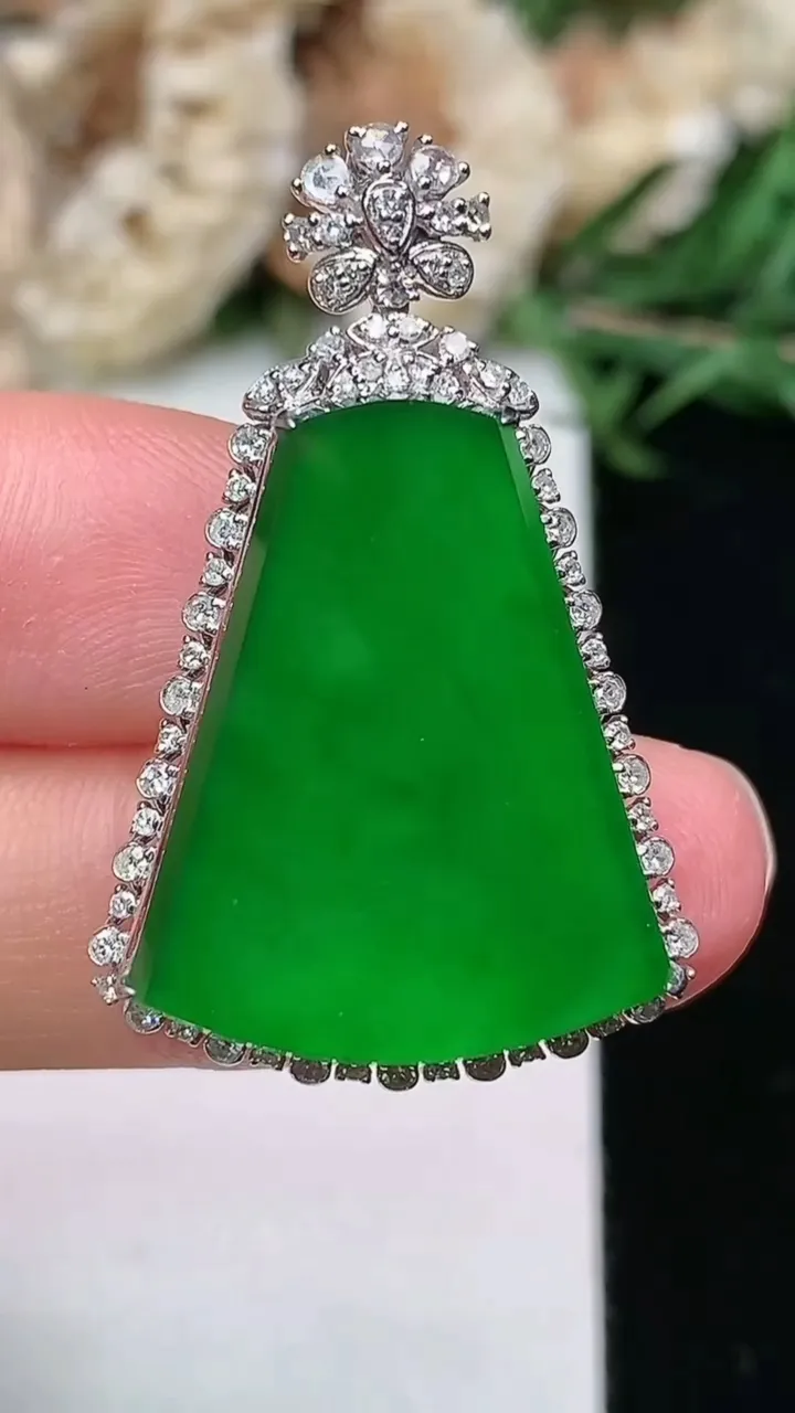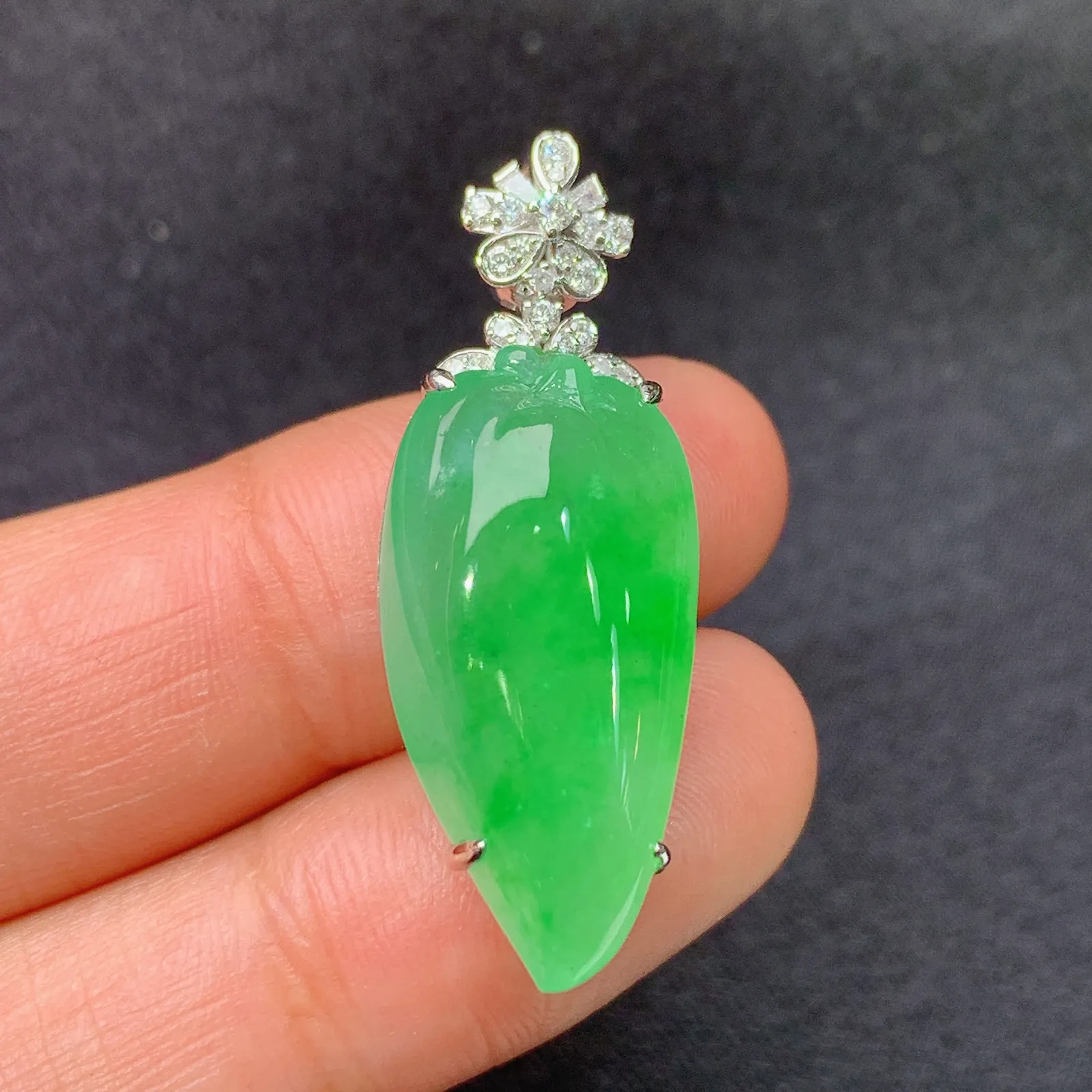 阳绿福瓜吊坠,18k金镶嵌,色泽鲜阳,冰润细腻,种水足,Jj 尺寸34.2*12.5*8.3
