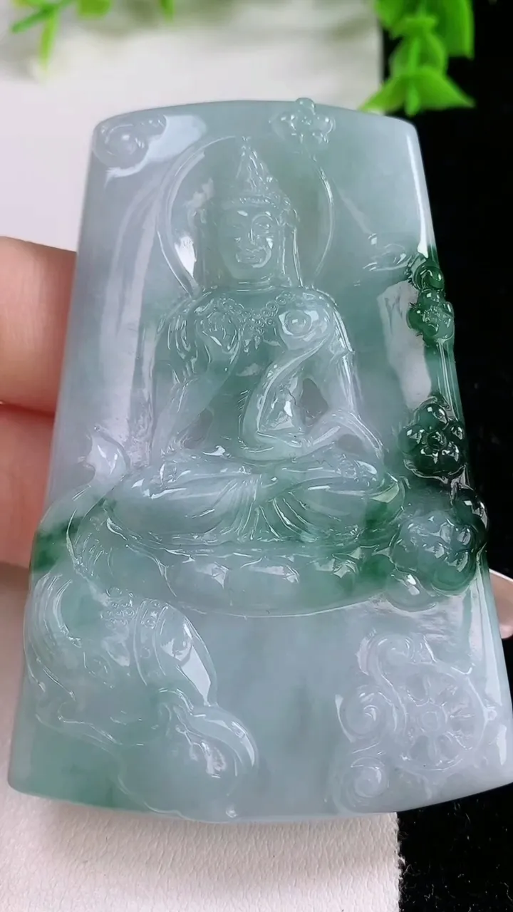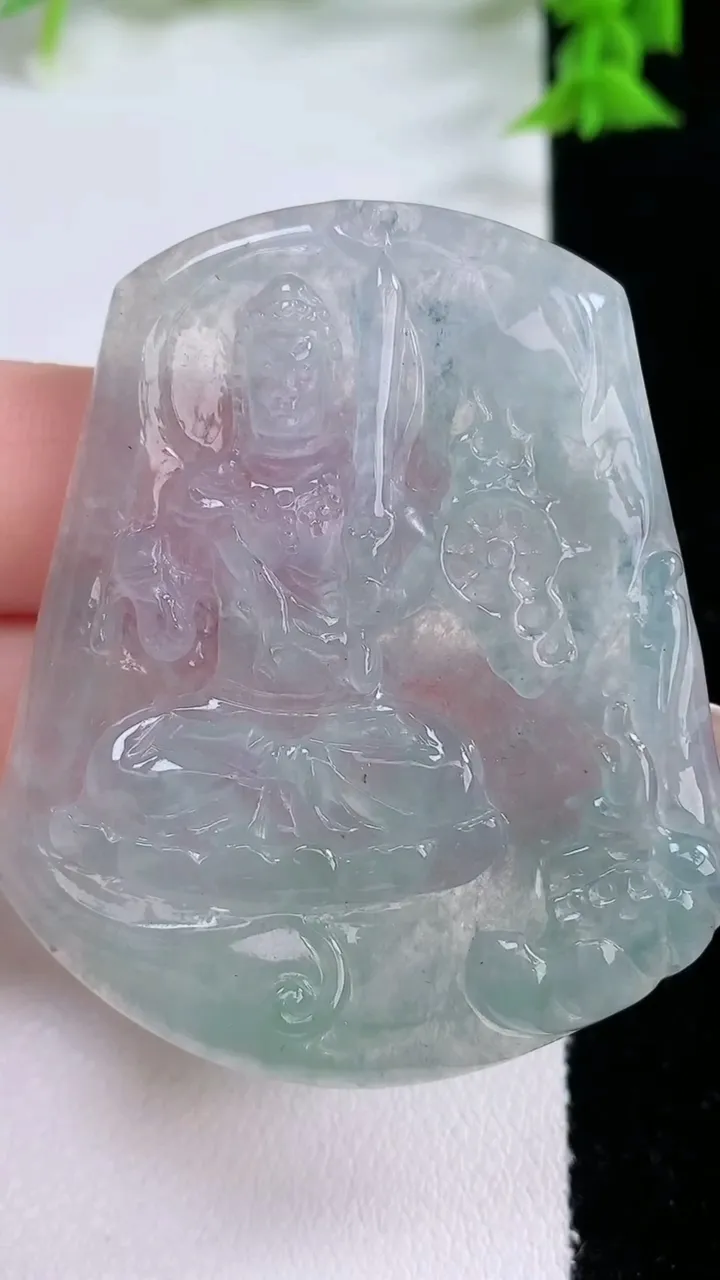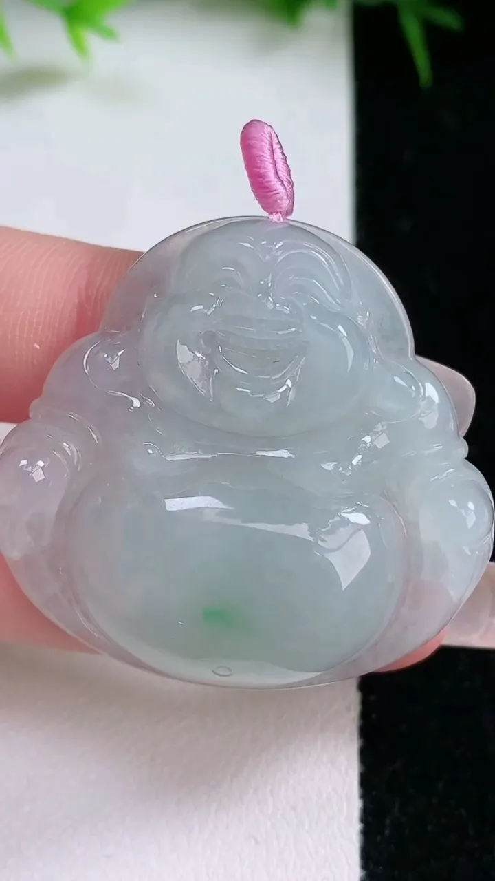 天然A货翡翠冰种飘花佛公吊坠,尺寸30.2-34-6,重量:9.36g 1月27日