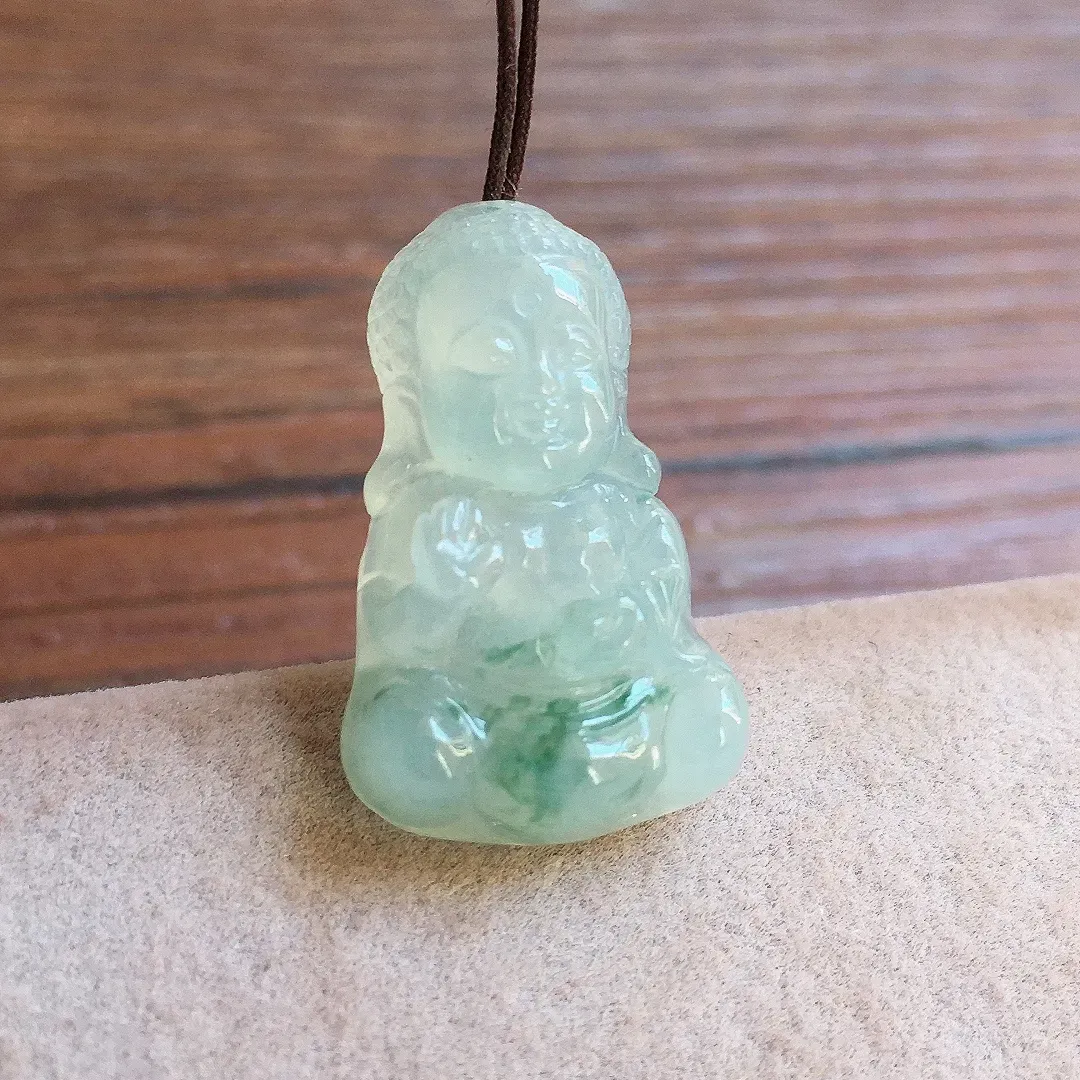 冰种笑佛吊坠,18k金镶嵌,冰润细腻,品相好,种水足,尺寸26*17.2*11.8