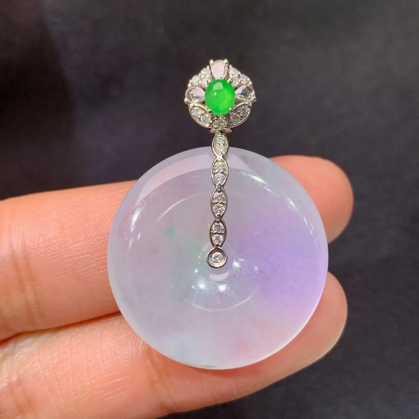 紫罗兰平安扣吊坠,18k金镶嵌,温润细腻,颜色鲜艳,Lp 尺寸34.8*25.2*5.2