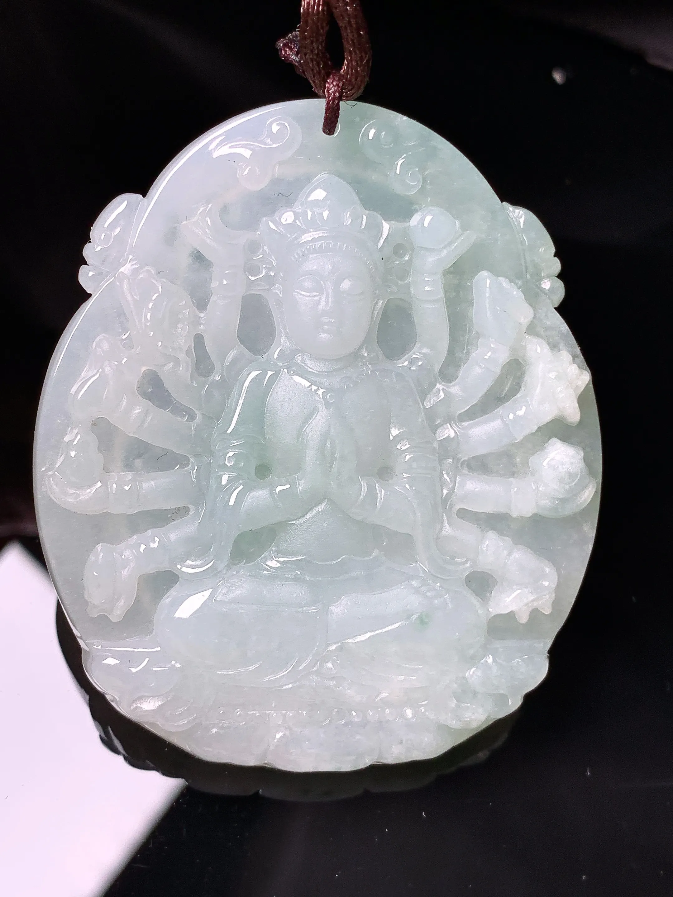 飘绿千手观音菩萨吊坠 玉质细腻 色泽艳丽清新 整体尺寸53.8*46*6.2