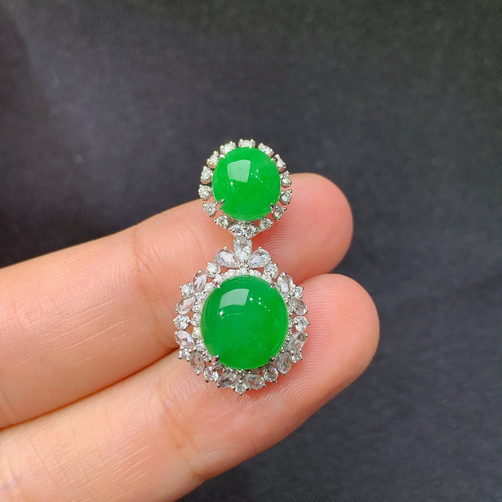 阳绿蛋面吊坠,18k金镶嵌,冰润色阳,玉质细腻,种水足,Ty 尺寸25.4*13.4*7.7