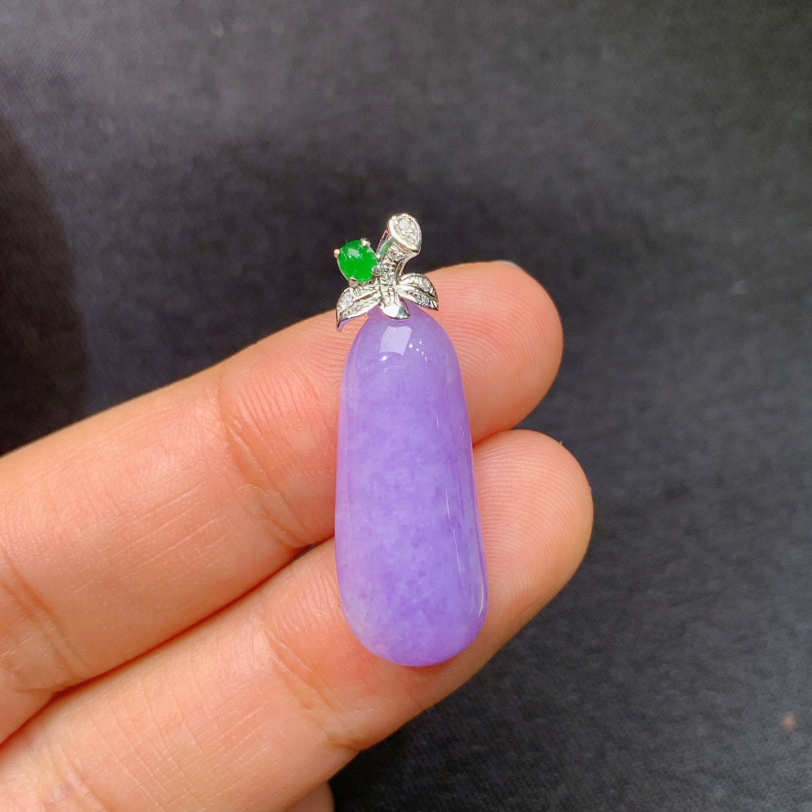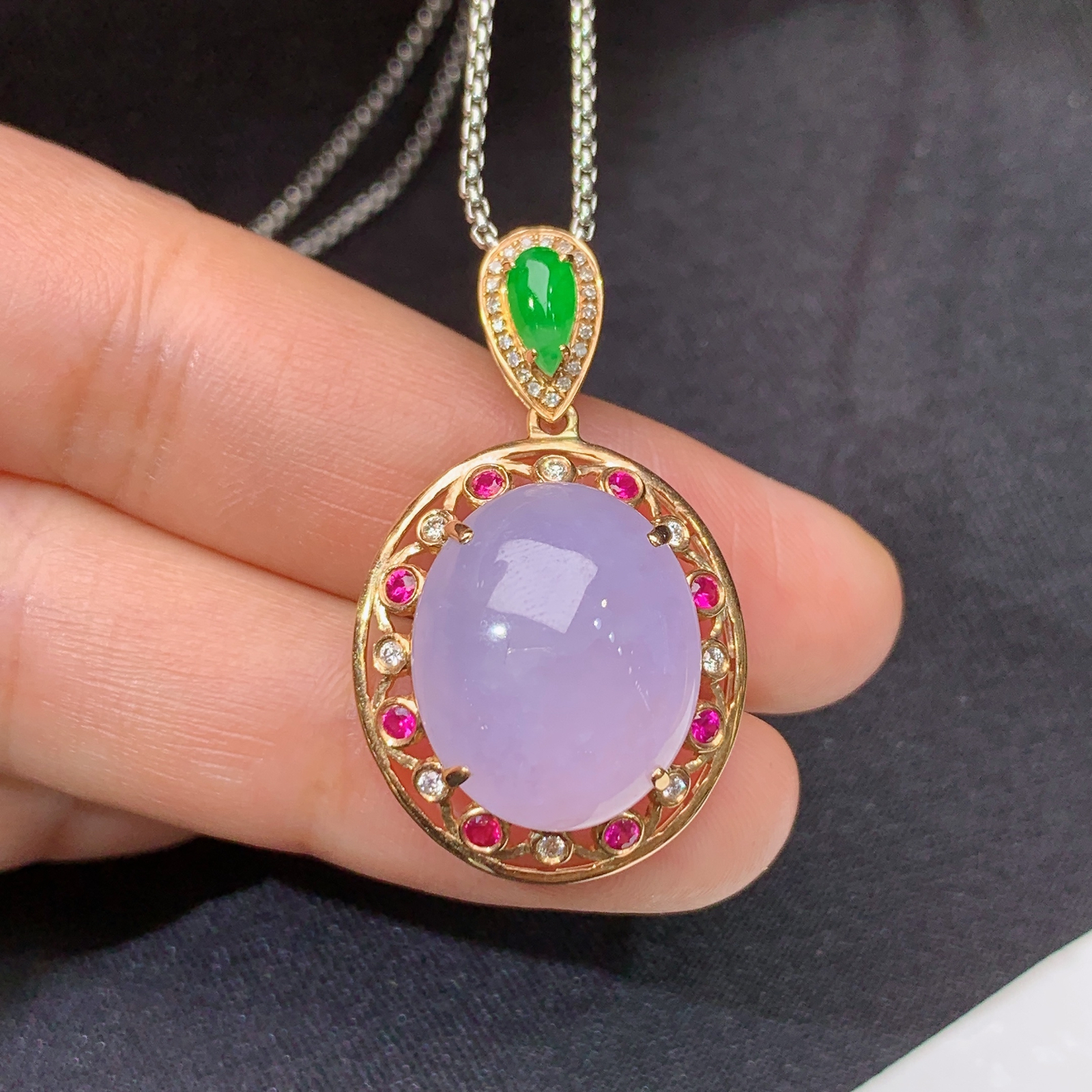 冰紫罗兰蛋面吊坠,18k金镶嵌,温润细腻,颜色鲜艳,Zha 尺寸32.6*19.6*9.6