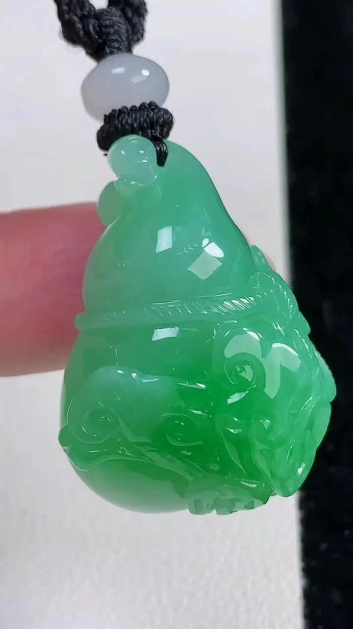 天然A货翡翠葫芦吊坠,尺寸30.2-22.8-12,重量:16.90g 11月15日
