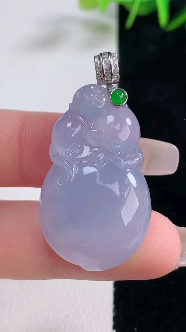 天然A货翡翠18K金紫罗兰葫芦吊坠,尺寸33.6-20.8-8,重量:11.11g 12月28日