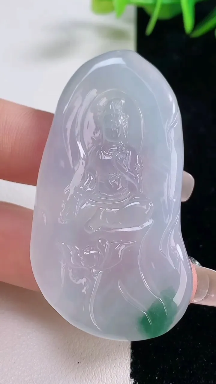 天然A货翡翠种飘花观音菩萨吊坠,尺寸58-32.6-5.8,重量:22.91g 12月28日