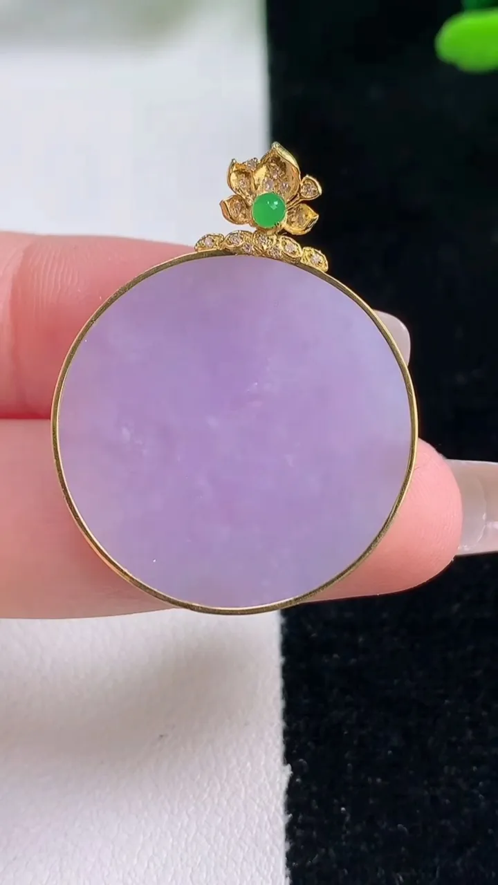 天然A货翡翠18K金紫罗兰无事牌吊坠,尺寸30-19.8-4.7,重量:5.92g 12月29日