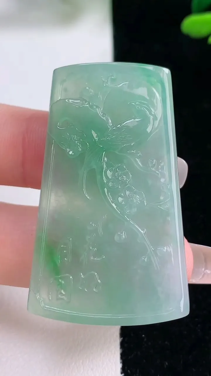 天然A货翡翠鸟语花香吊坠,尺寸46.5-28.4-4,重量:13.16g 12月29日