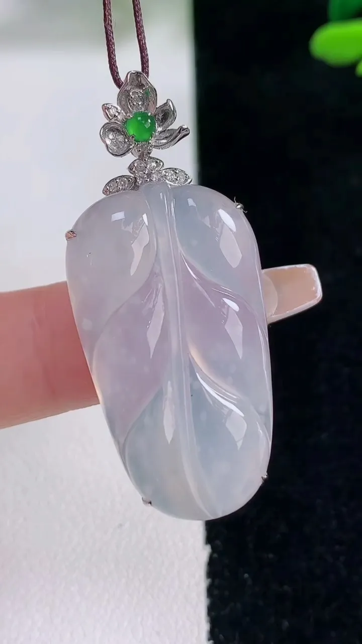 天然A货翡翠种白冰金枝玉叶 叶子吊坠,尺寸42-31.5-18.5-7.3,重量:7.51g 12月