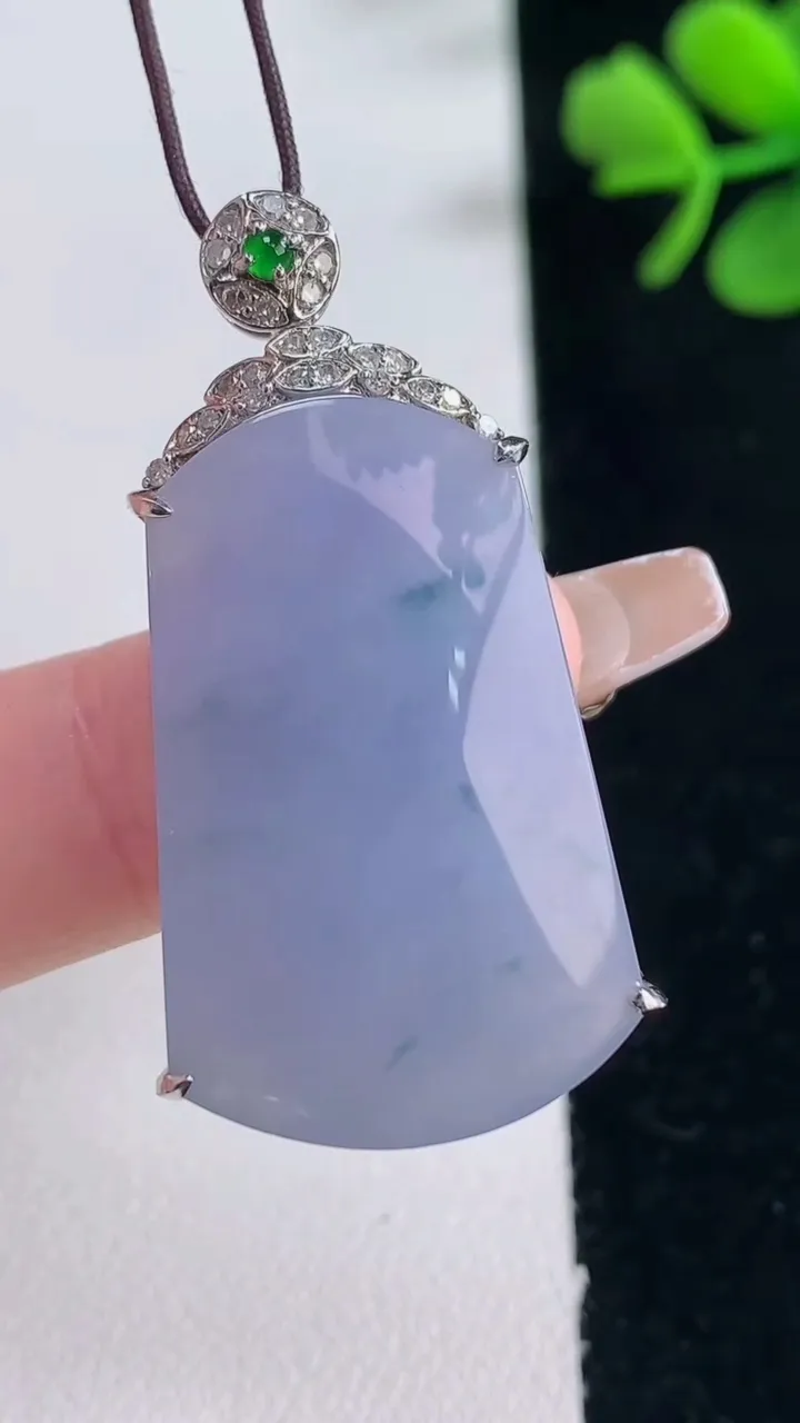 天然A货翡翠18K金紫罗兰无事牌吊坠,尺寸40.2-31-21.5-7.4,重量:9.03g 12月