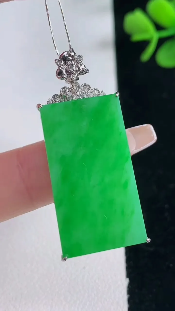 天然A货翡翠无事牌吊坠,尺寸38.7-28.8-15.6-6.3,重量:5.55g 12月30日