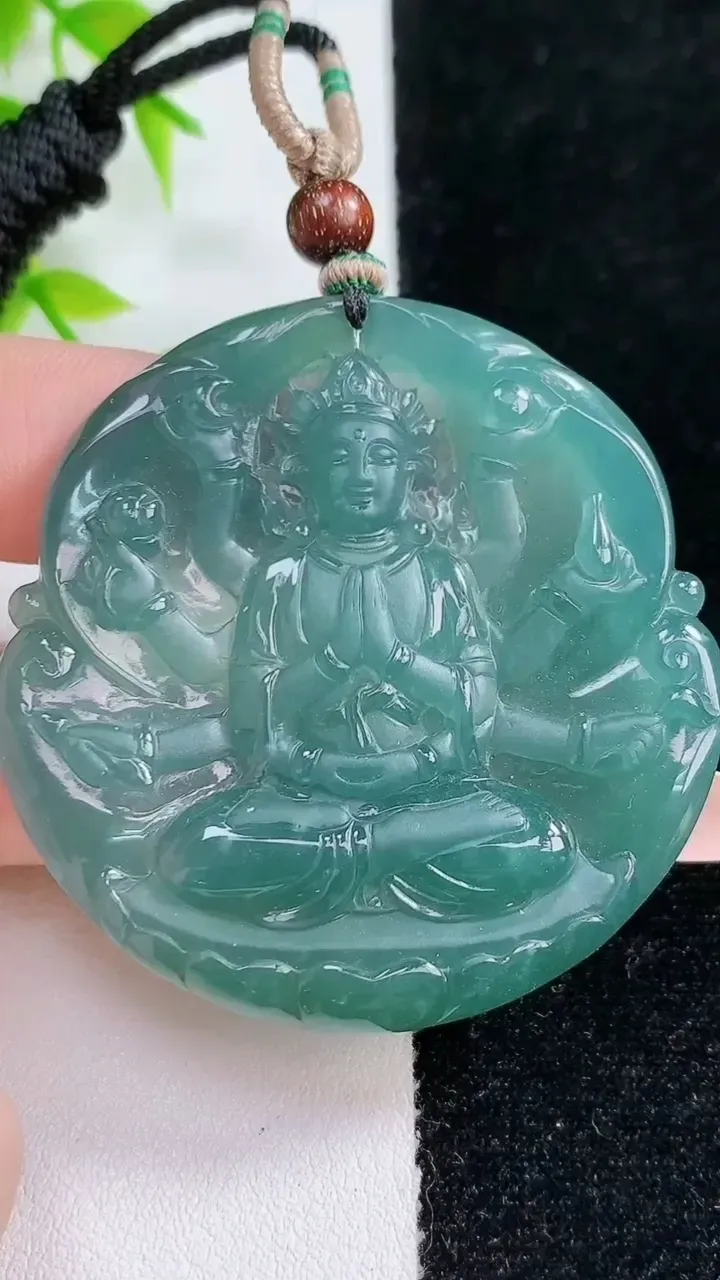 天然A货翡翠蓝水千手观音吊坠,尺寸50-6.5,重:33.70g 1月18日
