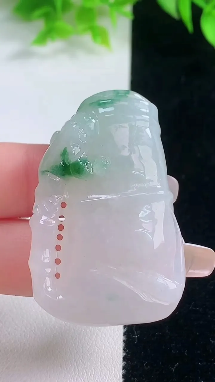 天然A货翡翠冰种飘花生肖猴吊坠,尺寸29.3-15.8-6,重量:5.45g 1月18日