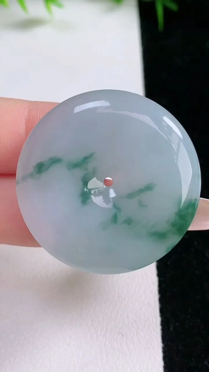 天然A货翡翠飘花平安扣吊坠,尺寸35.3-6,重量:16.47g 1月25日