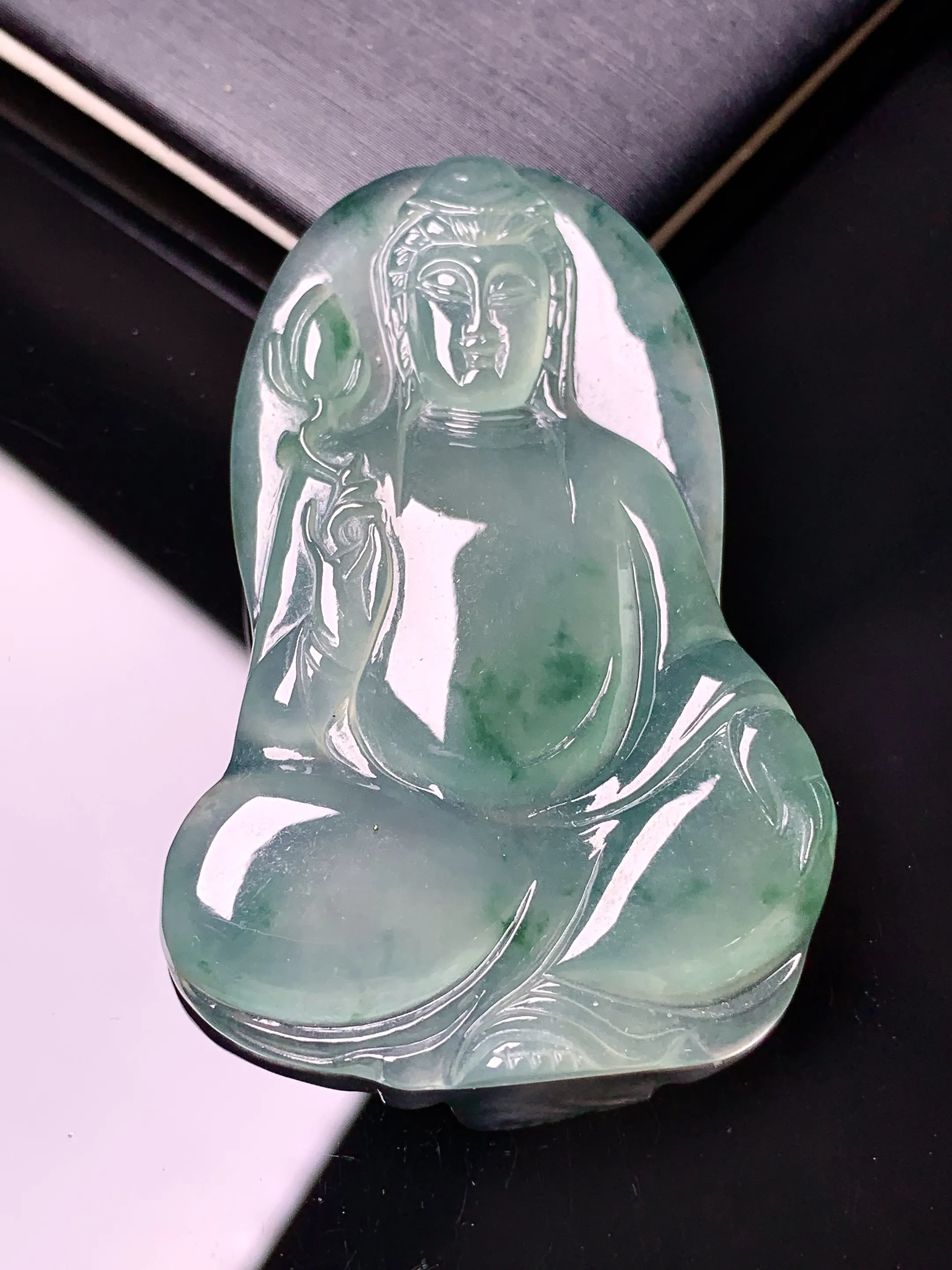 飘花冰种观音吊坠 玉质细腻 色泽艳丽清新 整体尺寸50.3*33*5.2