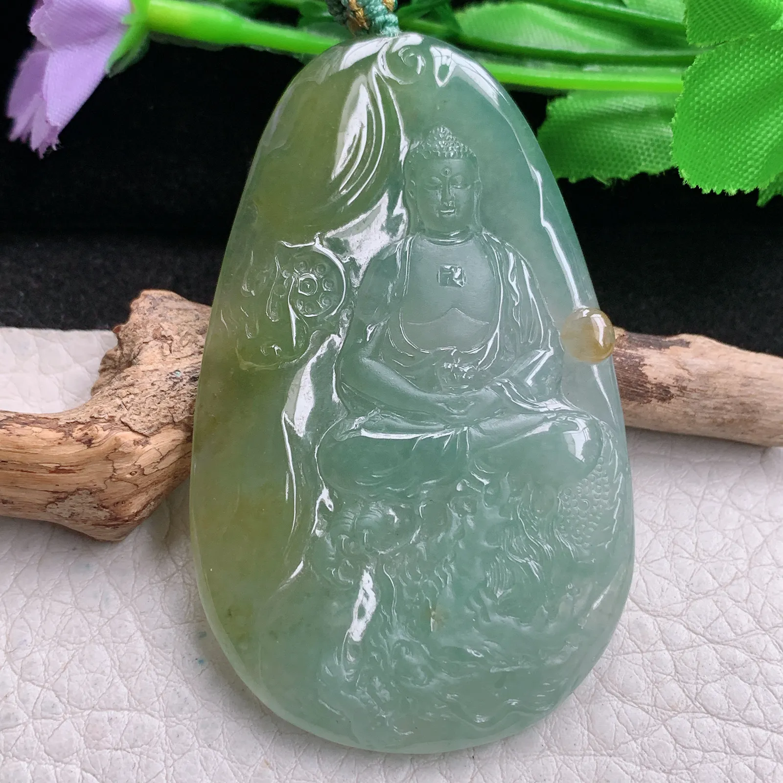 yn实拍65.8*40.3*5.6缅甸翡翠精雕冰双彩御龙佛祖 佛主玉吊坠 玉挂坠