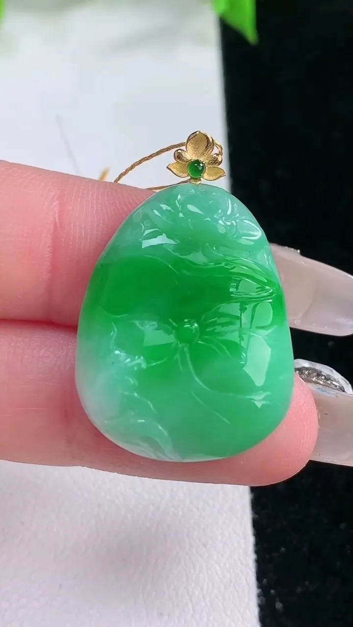 天然A货翡翠和和美美 荷叶鱼吊坠,尺寸25.6-20.4-6.2,重量:6.64g 2月5日