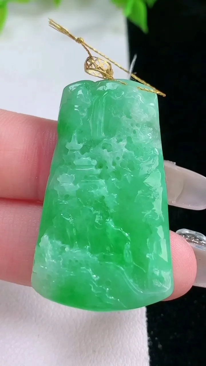 天然A货翡翠山水牌吊坠,尺寸34-16.4-5.7,重量:8.07g 2月5日