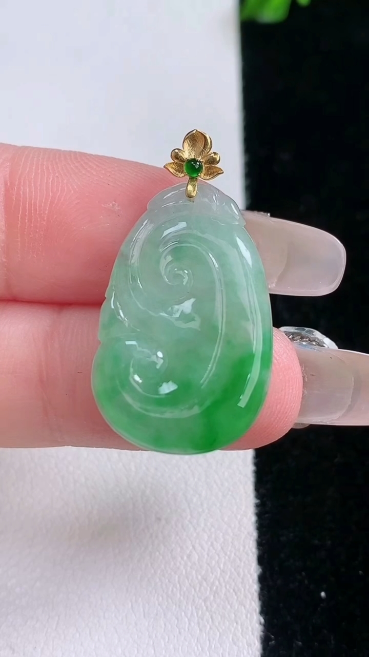 天然A货翡翠如意吊坠,尺寸25.5-15.8-2.8,重量:2.75g 3月6日