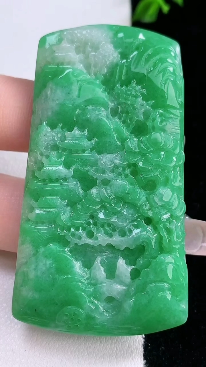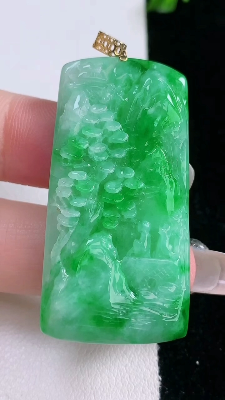 天然A货翡翠山水牌吊坠,尺寸45.8-23.6-6.2,重量:16.44g 3月6日