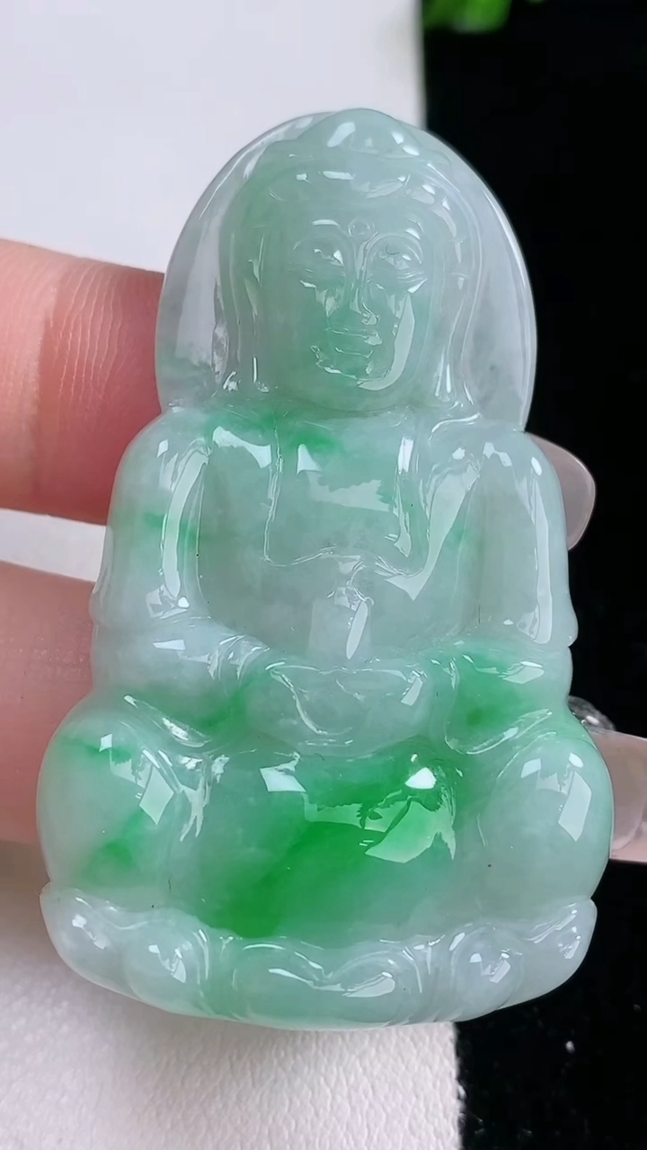 天然A货翡翠观音菩萨吊坠,尺寸51-31-5.3,重量:15.00g 3月6日