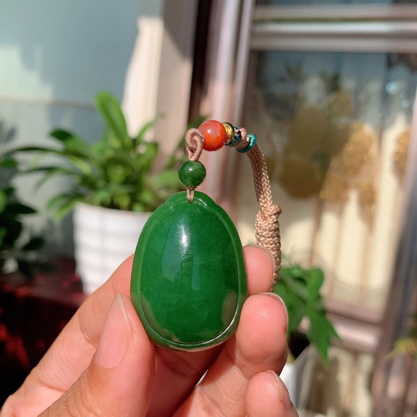 和田玉阳绿俄罗斯碧玉平安无事牌挂件。尺寸35/26/10重15.8克。玉质细腻油润。手推出油。品相大
