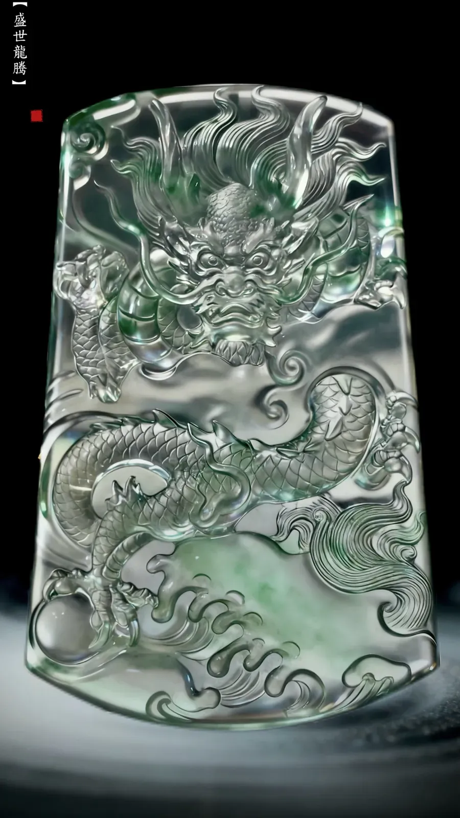 【盛世龙腾·神龙护主】,高品质龙牌, 经鼎玉雕艺术作品,63-40-7mm,39g,