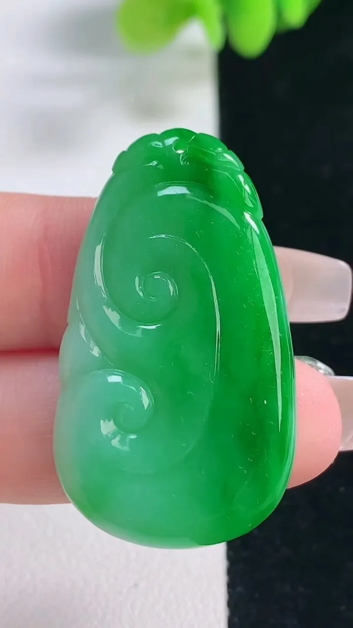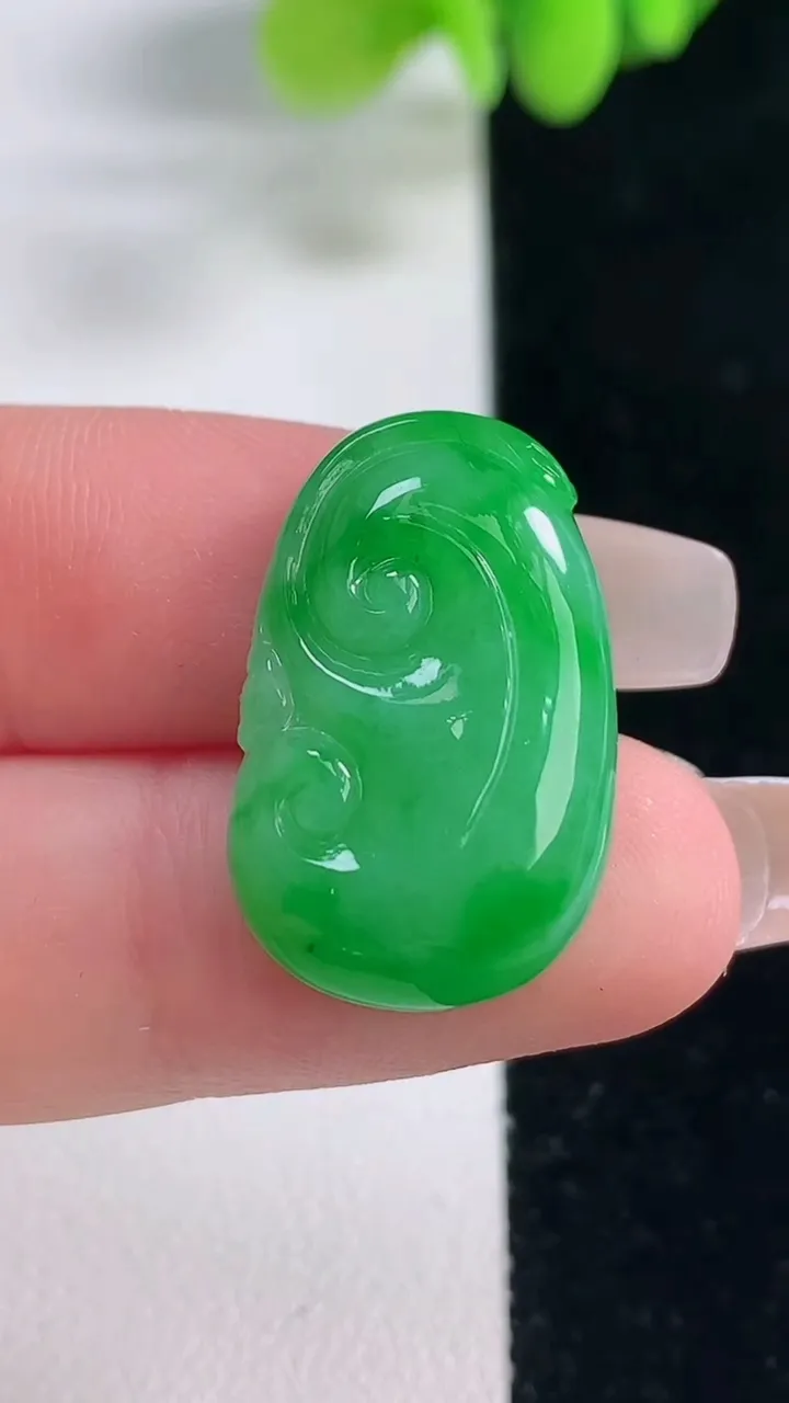 天然A货翡翠如意吊坠,尺寸24-15.2-5.7,重量:4.52g 12月20日