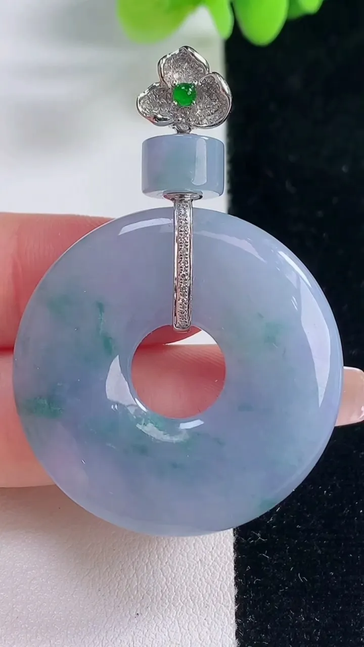 天然A货翡翠18K金紫罗兰平安环吊坠,尺寸34.8-4.7,重量:16.30g 12月20日
