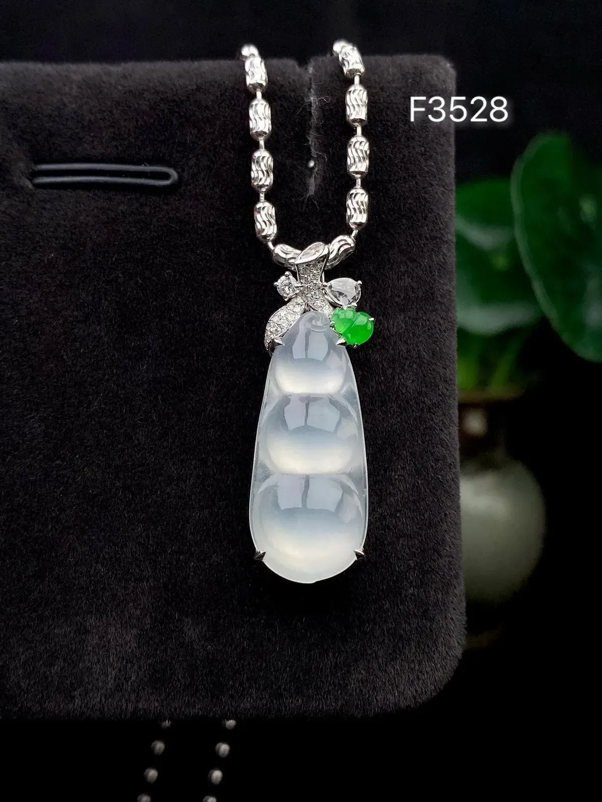 【冰种福豆吊坠】种地上乘,冰感十足,通透起光,饱满圆润,收藏品质,18k金钻镶嵌,裸石尺寸23.9*