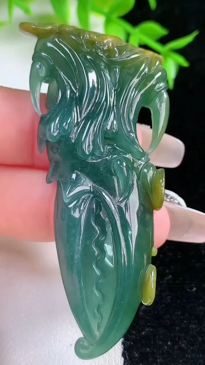 天然A货翡翠蓝水双彩蟹钳吊坠,尺寸65-27.3-8.3,重:22.18g 1月18日