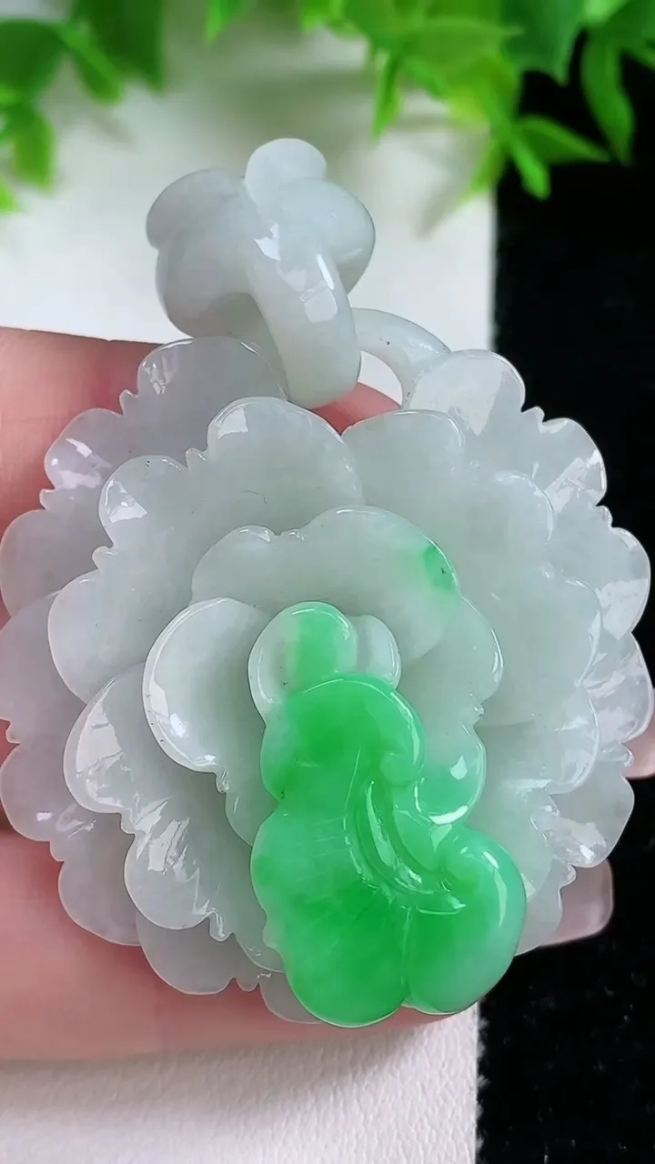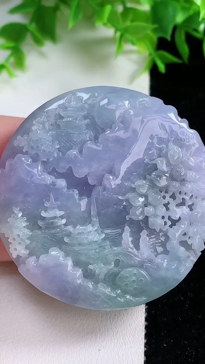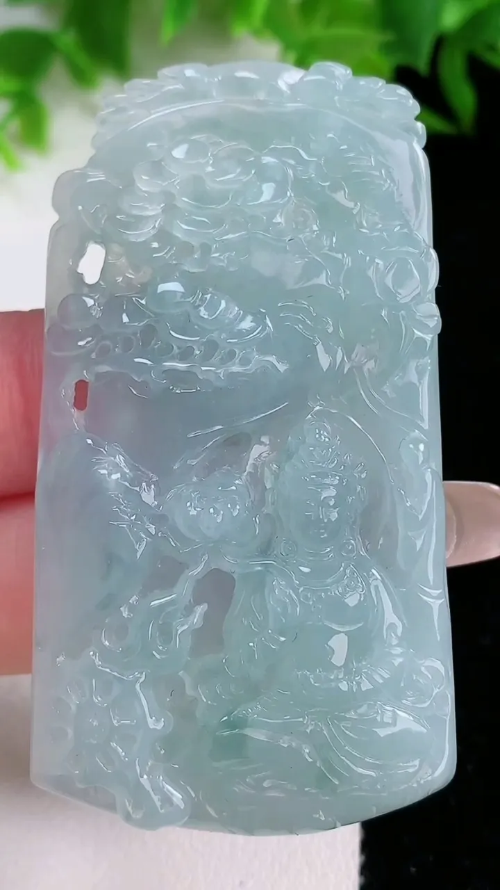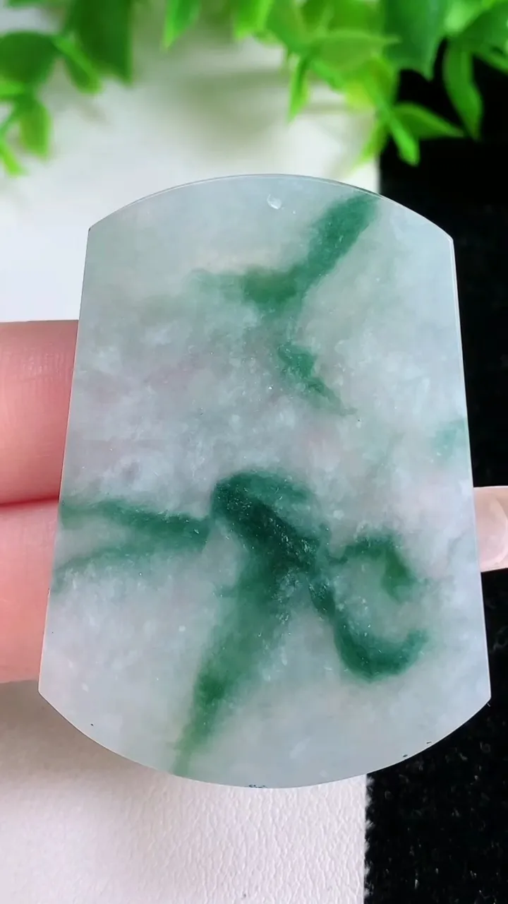 天然A货翡翠种飘花无事牌吊坠,尺寸53-40.7-5.5,重量:36.40g 1月24日