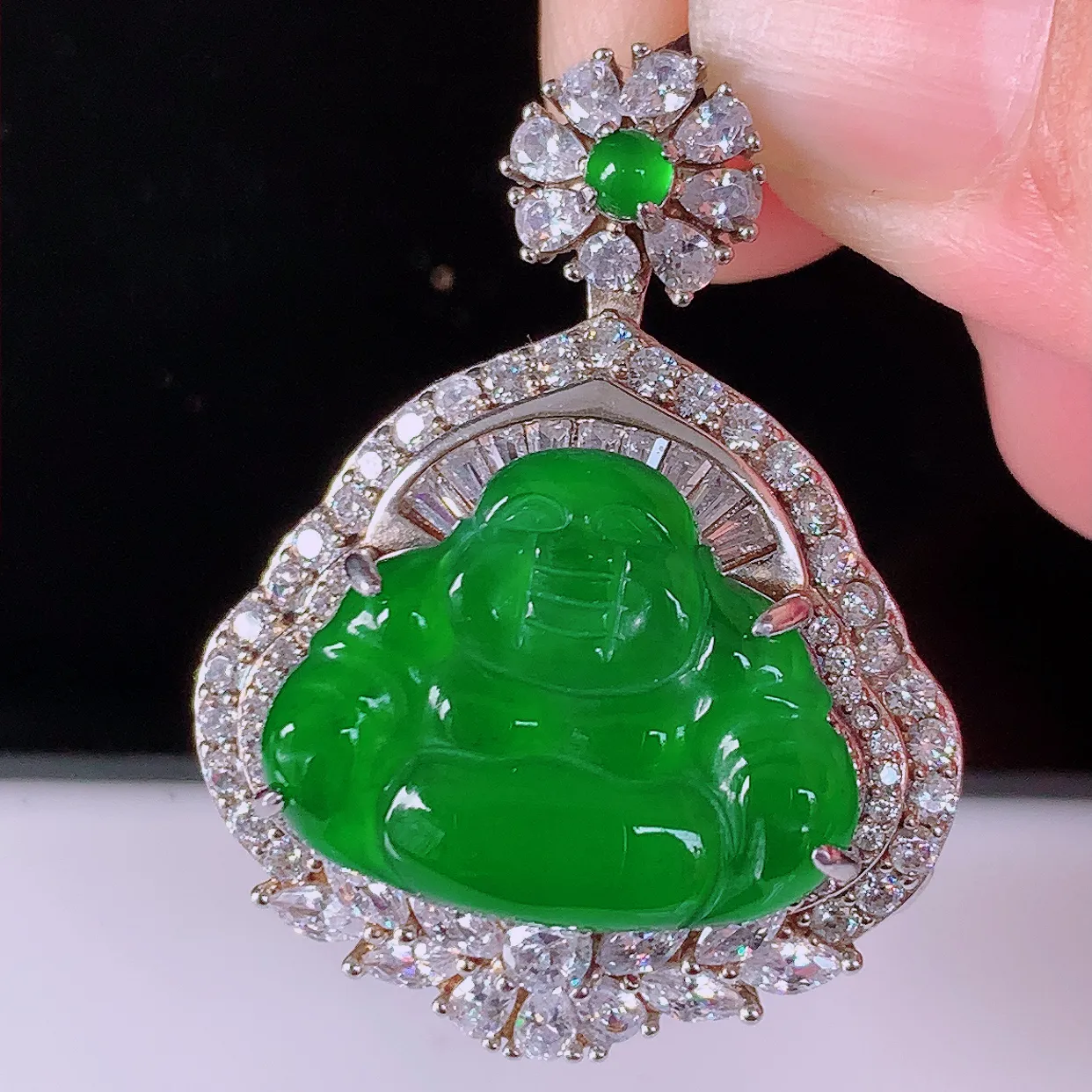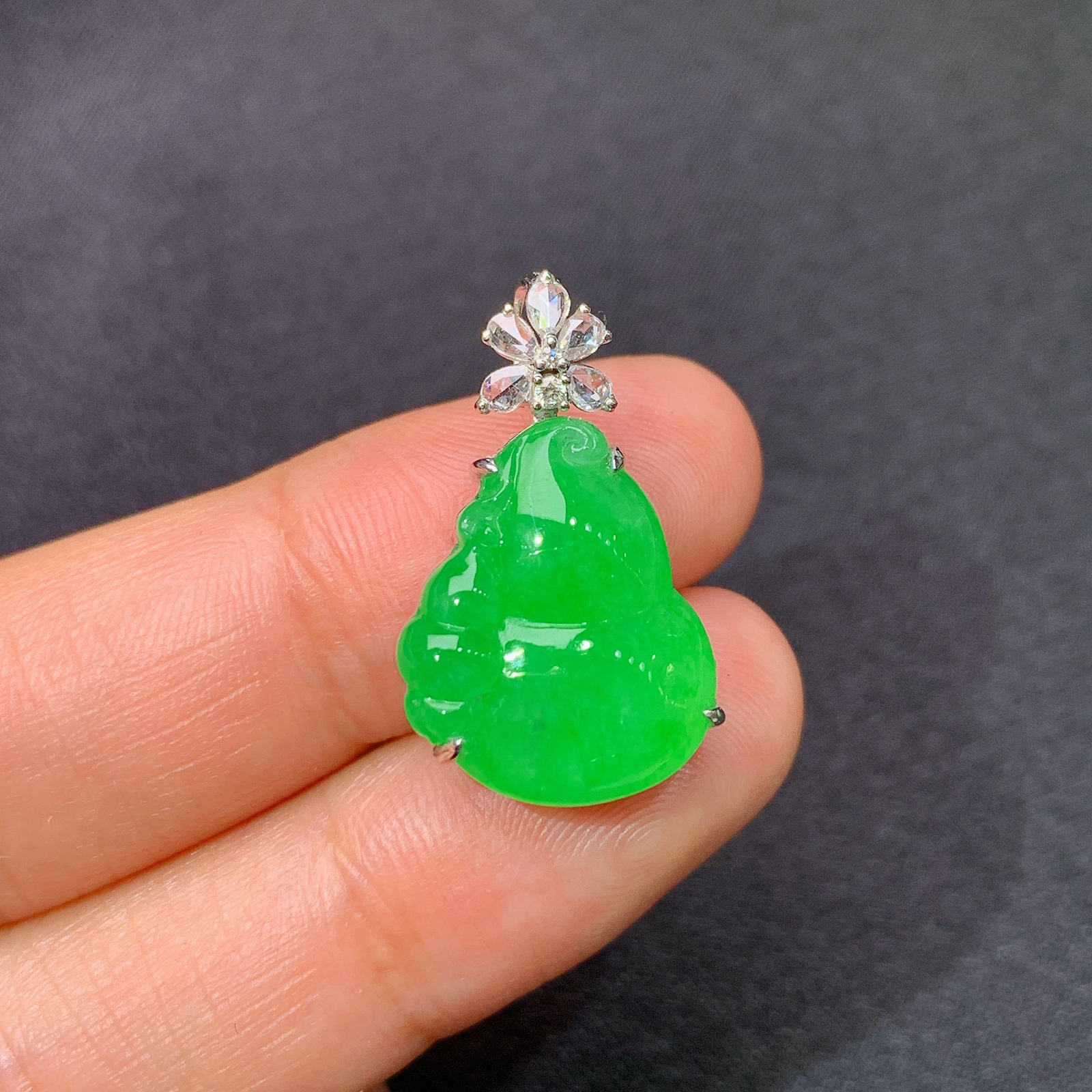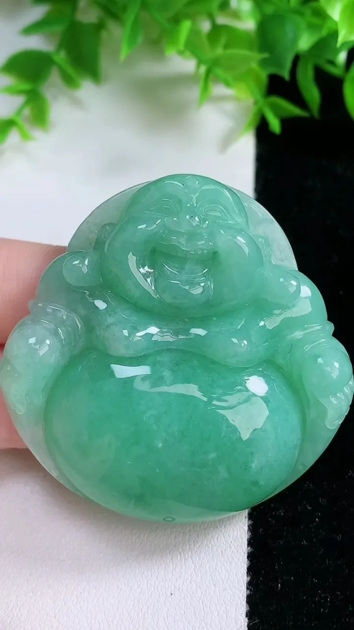 秒杀【超低价放漏】冰润飘绿佛公吊坠,开心笑佛,种老水足,颜色漂亮,立体饱满圆润,佩戴效果赞#04.8