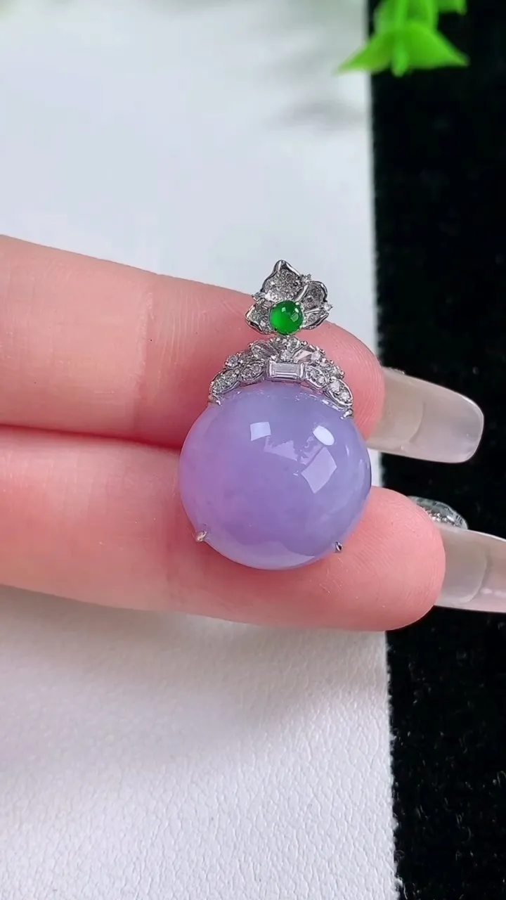 天然A货翡翠18K金紫罗兰蛋面吊坠,尺寸25.8-15-16.2-9.5,重量:5.13g 1月27