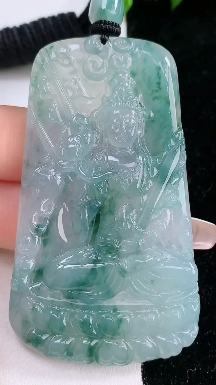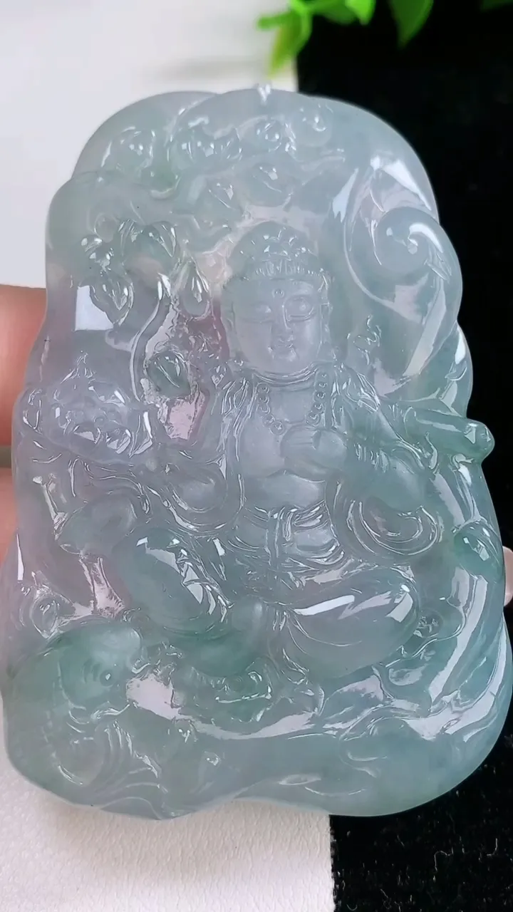 天然A货翡翠种飘花大势至菩萨吊坠,尺寸68-47.3-6,重量:45.63g 1月29日