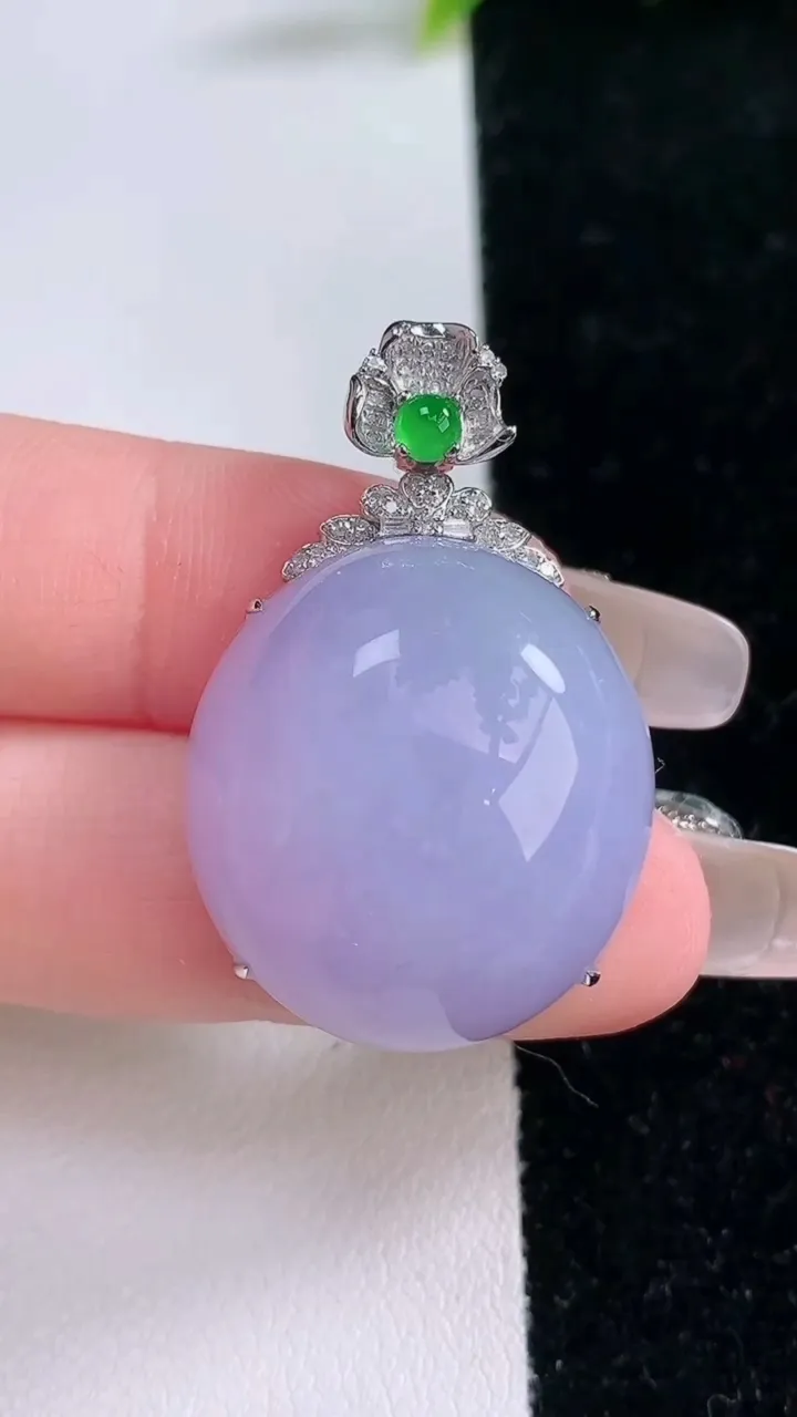 天然A货翡翠18K金紫罗兰蛋面吊坠,尺寸35.7-24.6-22.7-11.7,重量:13.78g