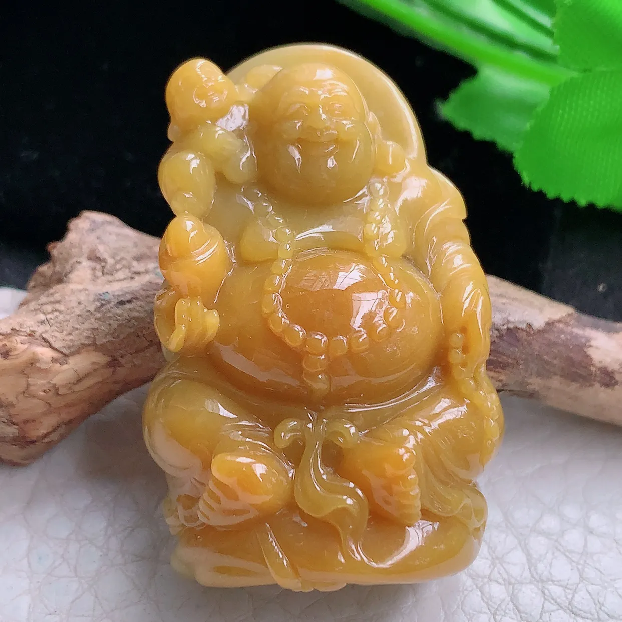lz实拍45.2*30.3*23.3缅甸翡翠精雕黄翡立体尼革佛 福上加福玉项坠 玉挂件
