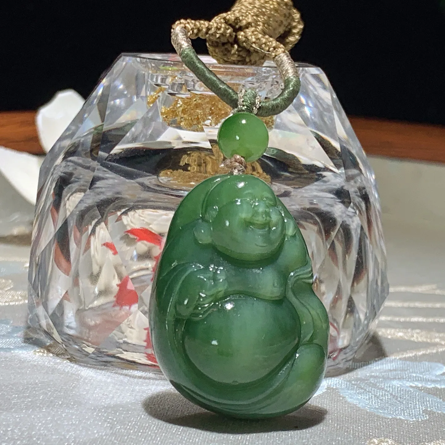 和田玉粉青俄罗斯碧玉佛引福来挂件!尺寸36/26/15重23.5克。无裂无杂无结构 玉质细腻油润。手