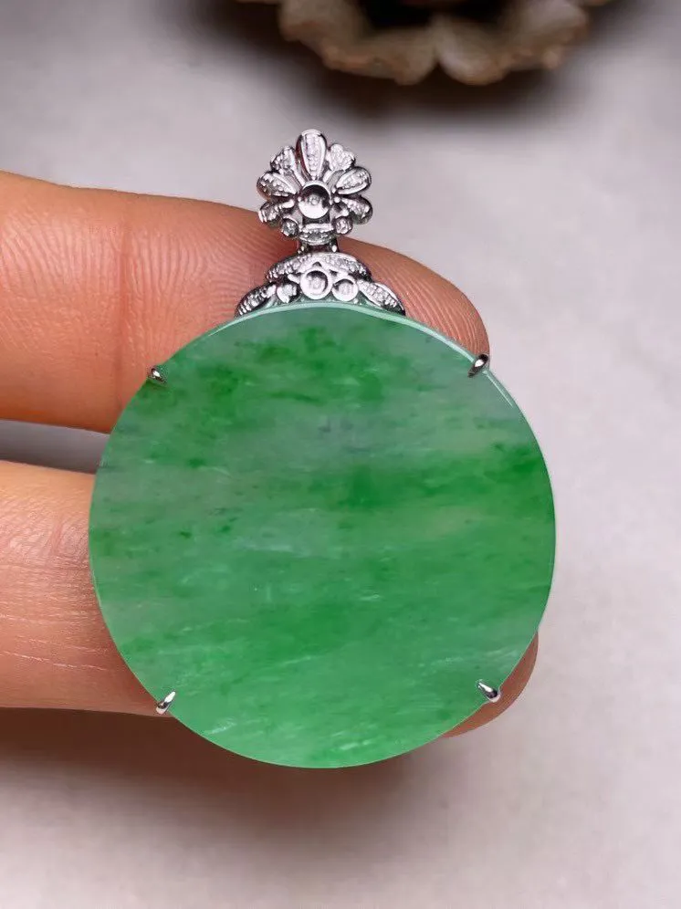 冰糯种飘色平安扣吊坠、真金真钻镶嵌,种水好,玉质细腻 .裸石尺寸 26.6