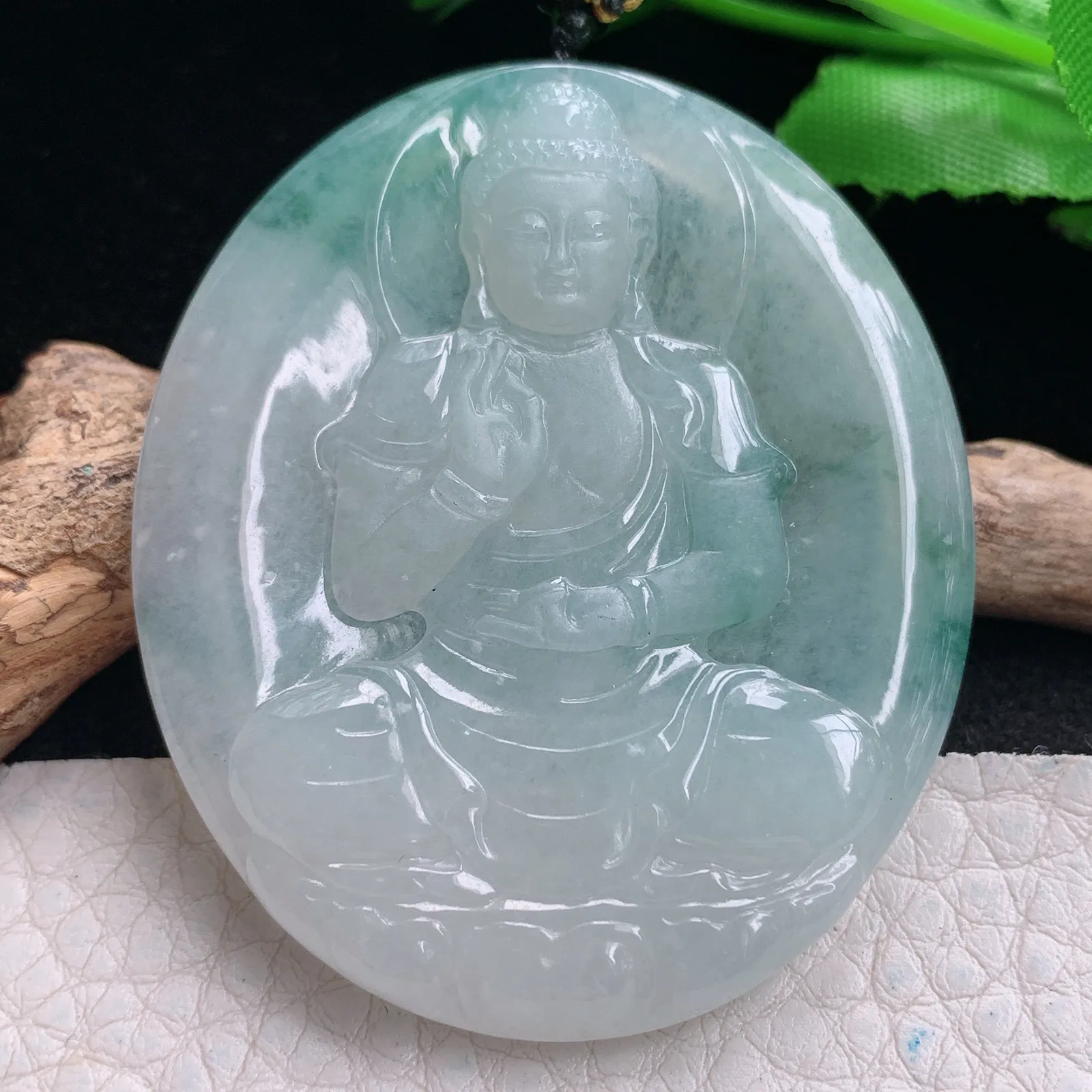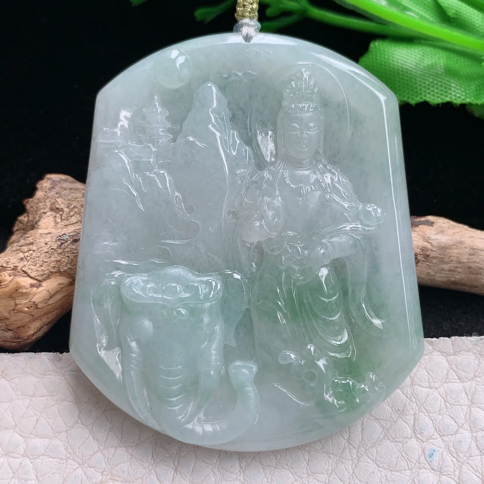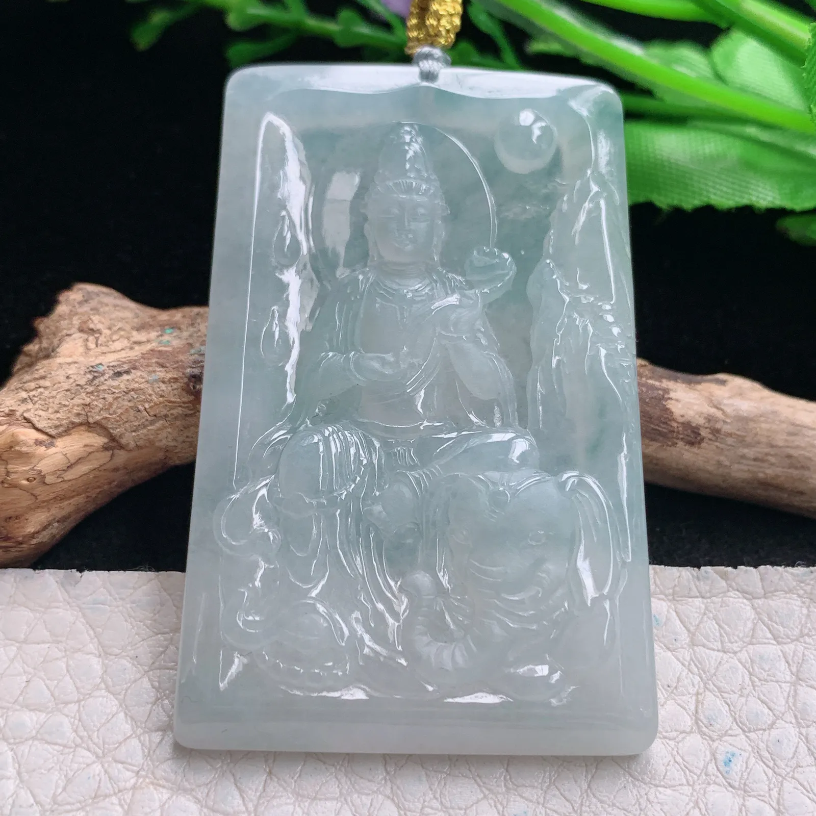 rp实拍52.8*34*5.2缅甸翡翠精雕冰晴普贤菩萨 生肖守护神玉吊坠 玉挂坠