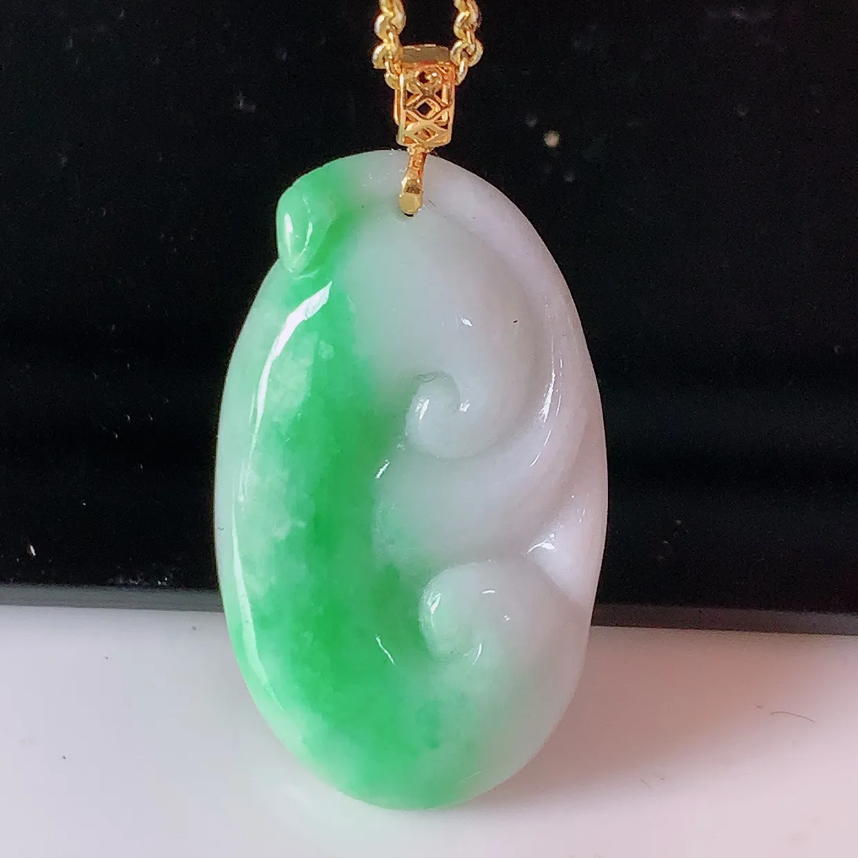 18k金镶嵌冰润飘绿如意翡翠吊坠,沁人心脾,精致典雅的设计,为佩戴者,增添色彩,送礼自留都是佳品选择