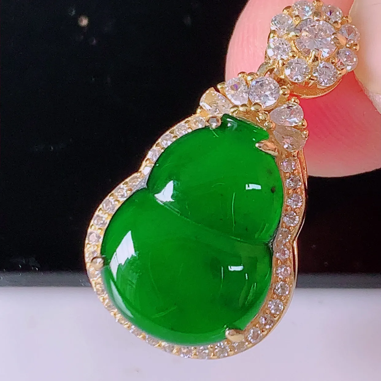 冰透满绿翡翠925银镶嵌葫芦吊坠,自然光实拍,翠色灵动,颜色漂亮,种老水足,品相佳,佩戴佳品!#97