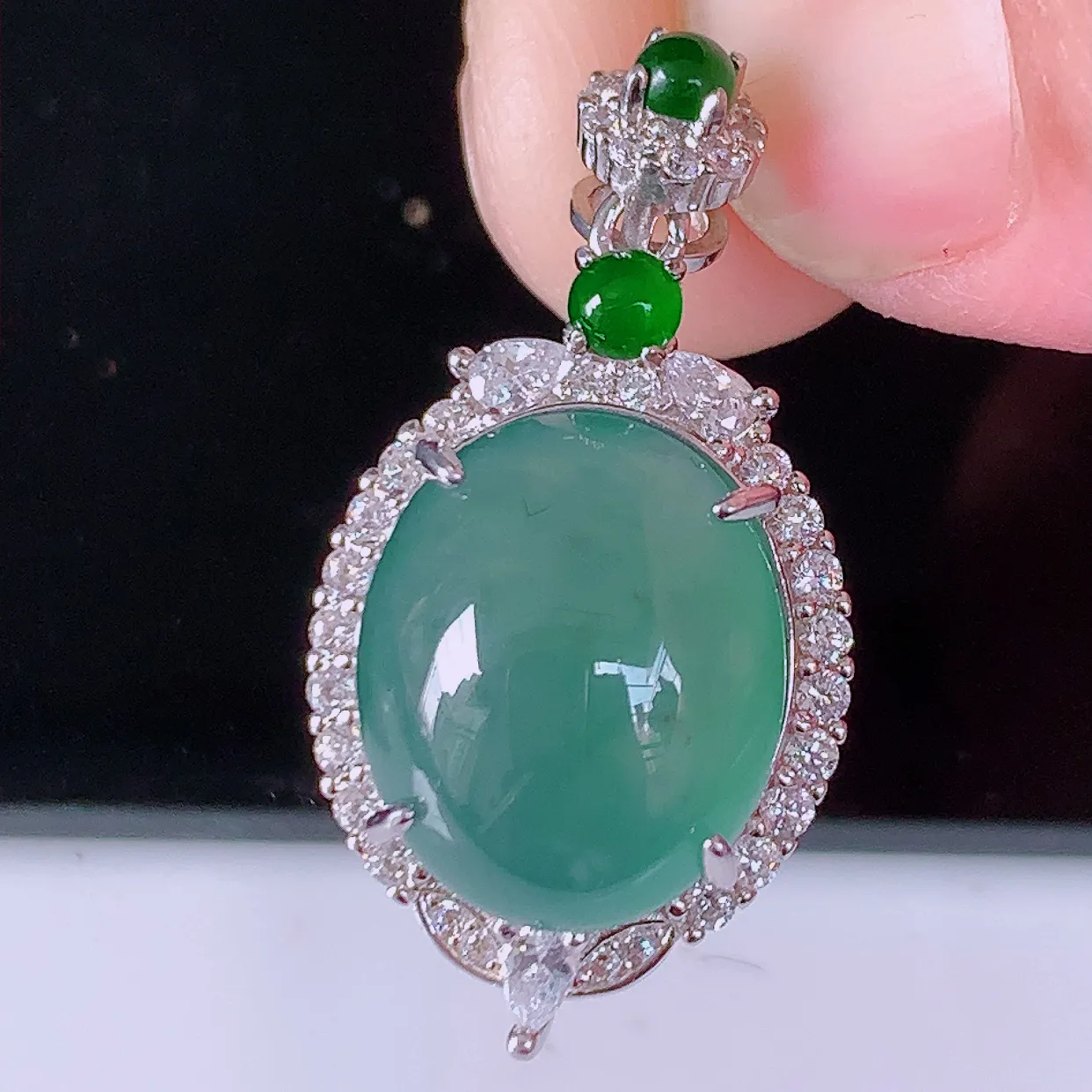 冰透满绿翡翠925银镶嵌吊坠,自然光实拍,翠色灵动,颜色漂亮,种老水足,品相佳,佩戴佳品!#97.2