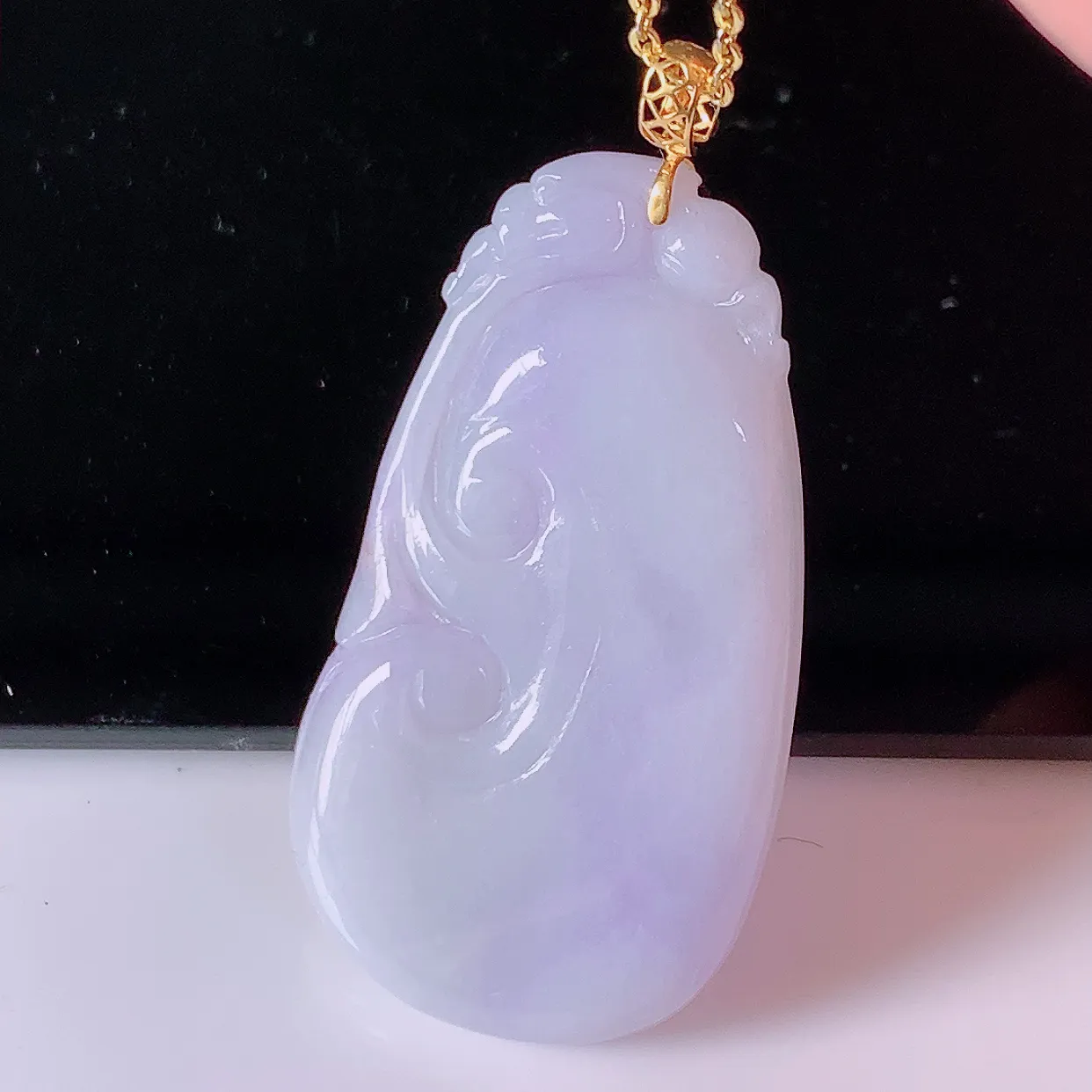 18k金镶嵌冰润紫罗兰翡翠如意吊坠,沁人心脾,精致典雅的设计,为佩戴者,增添色彩,送礼自留都是佳品选