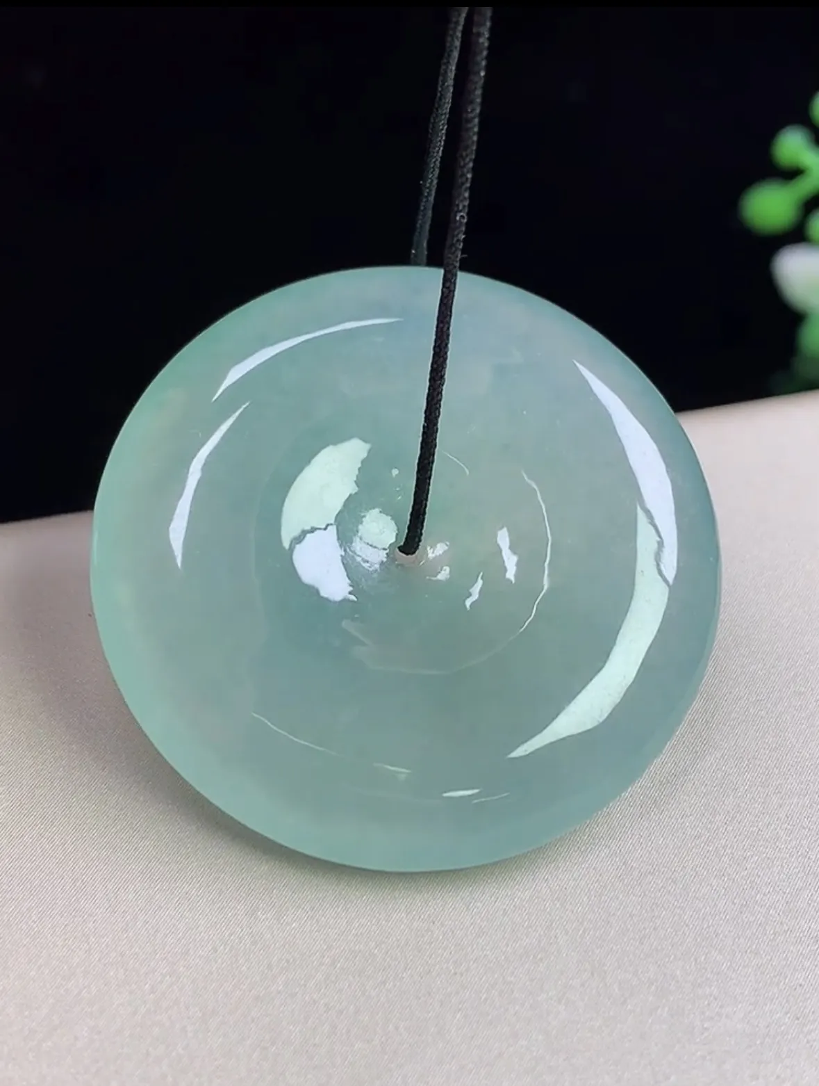 和田玉青海翠翠青佛引福来圆牌挂件 尺寸47/9重32克。玉质细腻油润。手推出油。佩戴高端典雅。lt2