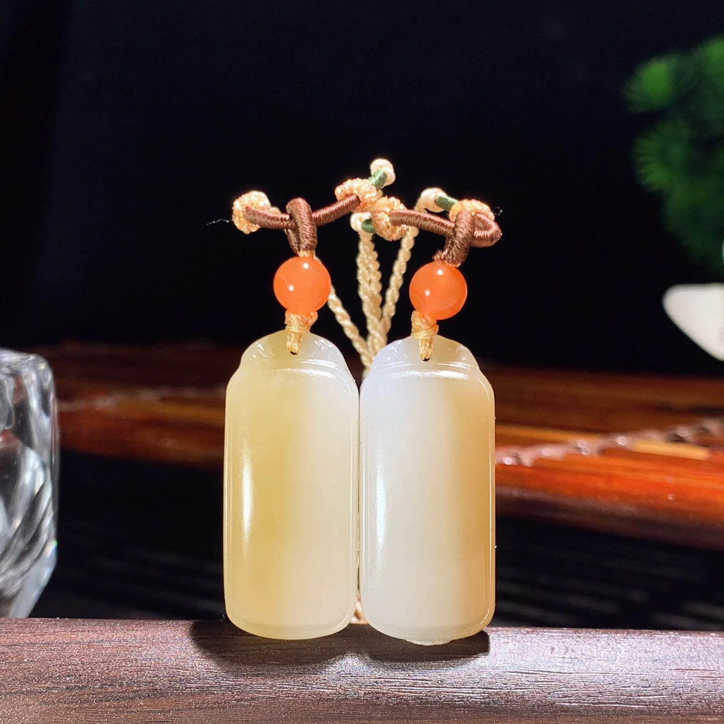 一对新疆和田玉白玉且末糖平安无事牌挂件 尺寸30/13/6重13克。玉质细腻油润。手推出油。佩戴高端